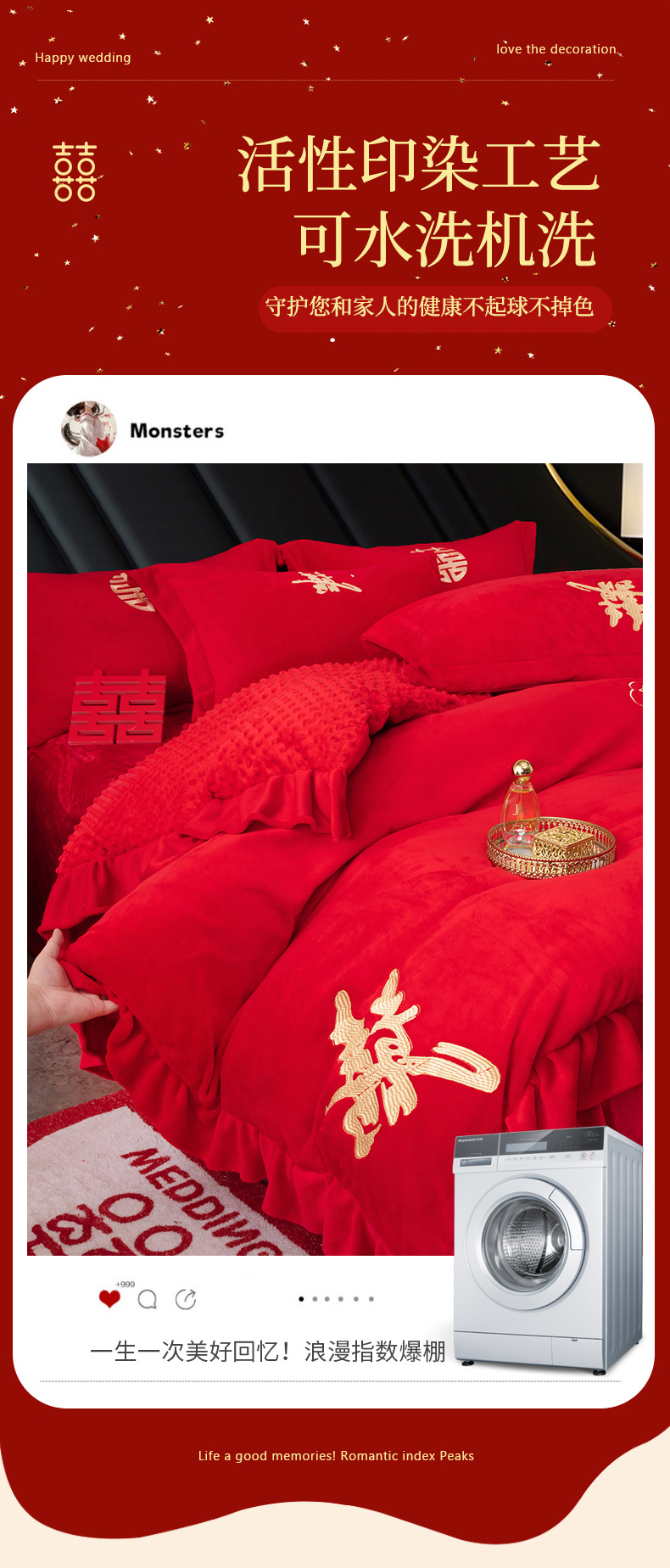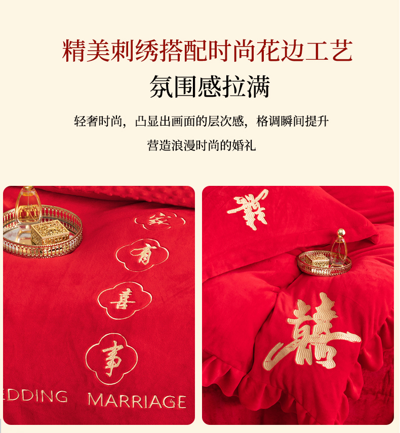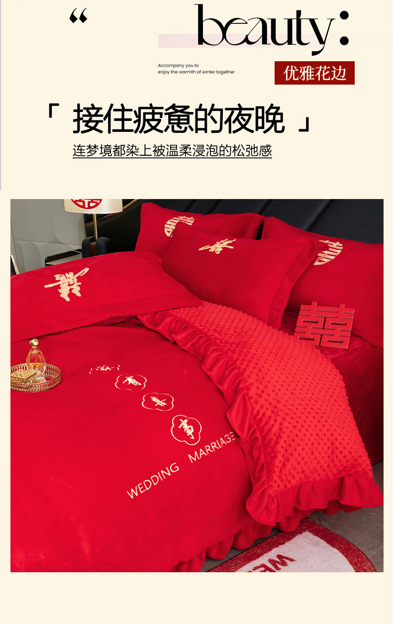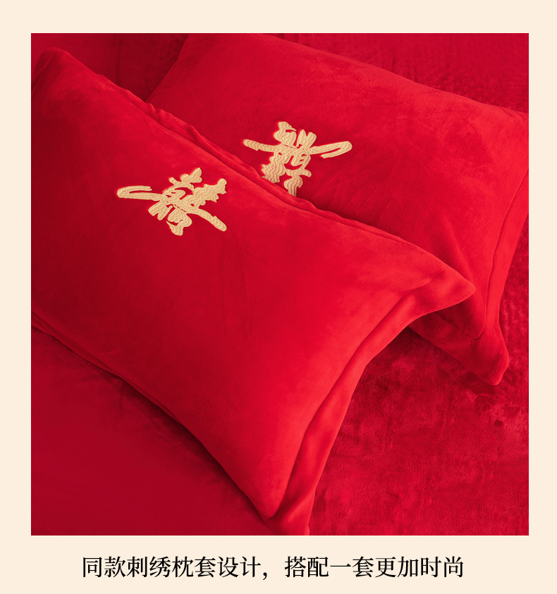 商品名称:卓缦家纺 2025新款牛奶绒豆豆绒婚庆四件套 双喜临门