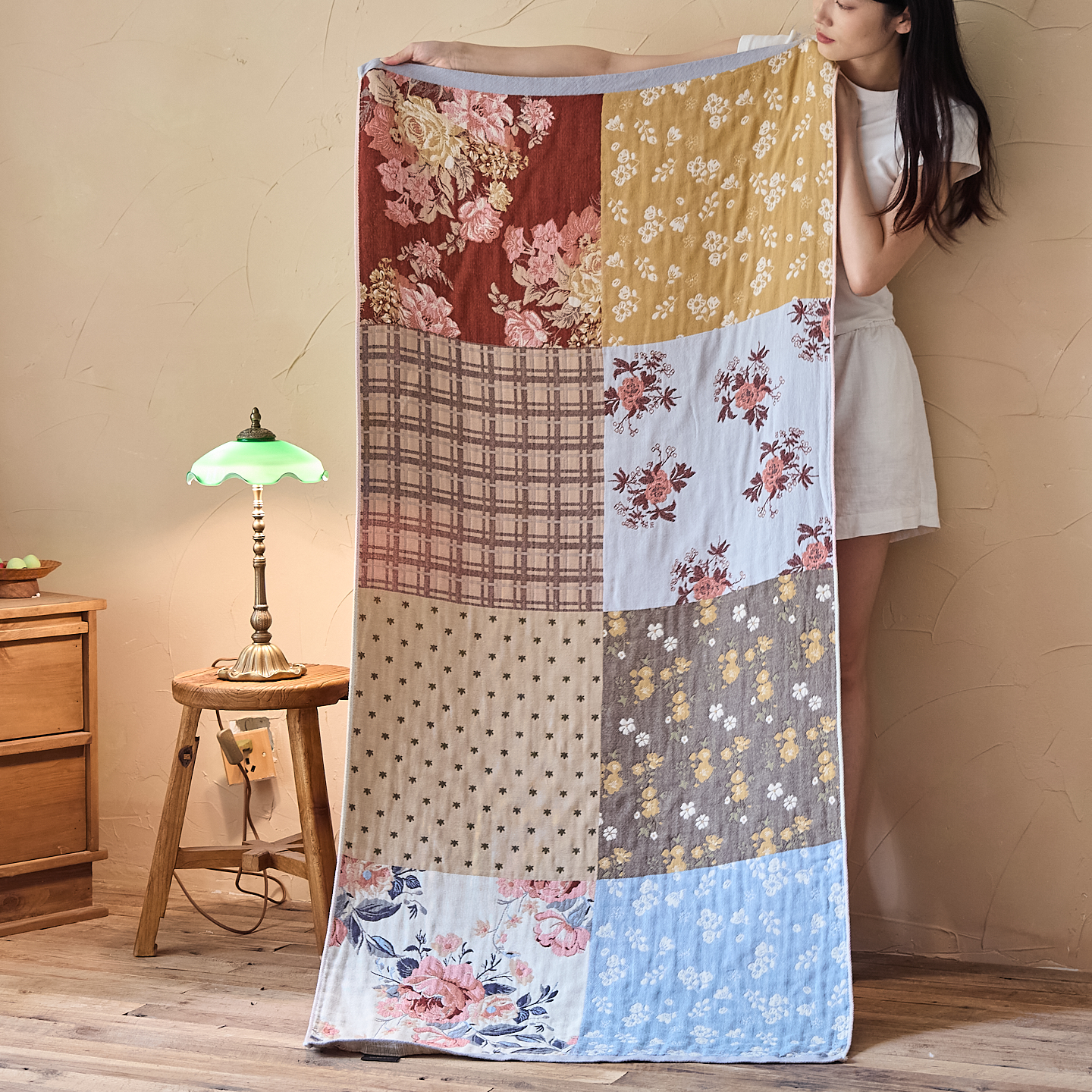 • 91家纺网 家纺一手货源 找家纺 (总)沐瑟家纺 2026新款全棉四层纱布床盖-星星和心情系列,心情-粉色,心情-灰蓝,心情-卡其,星星-黄色,星星-灰色,星星-蓝色,星星-紫色,组合