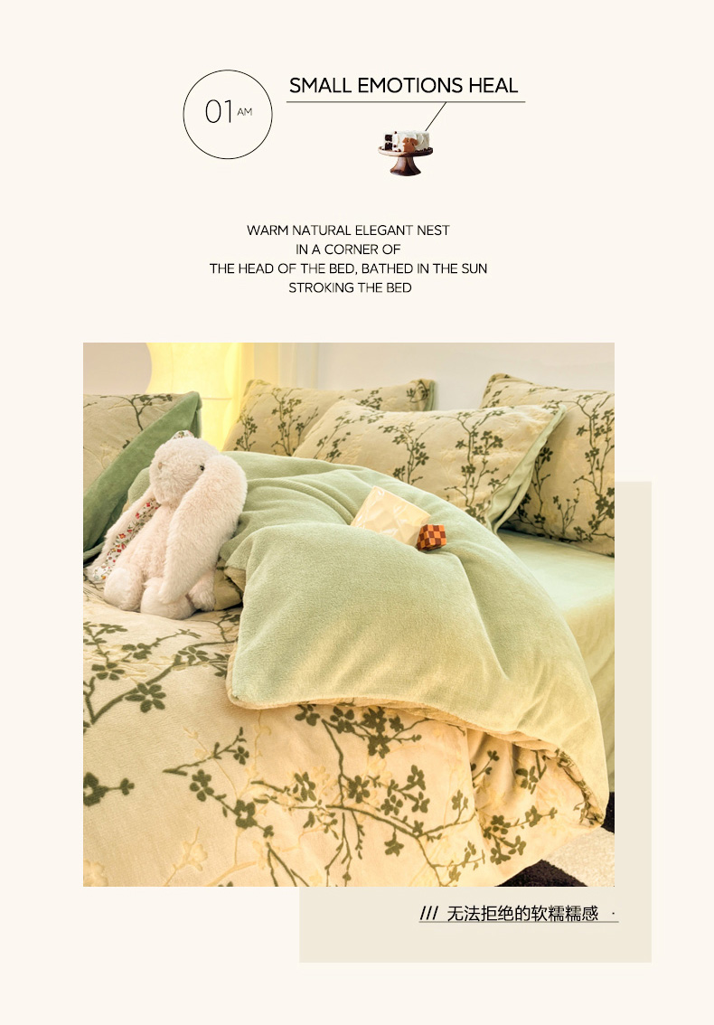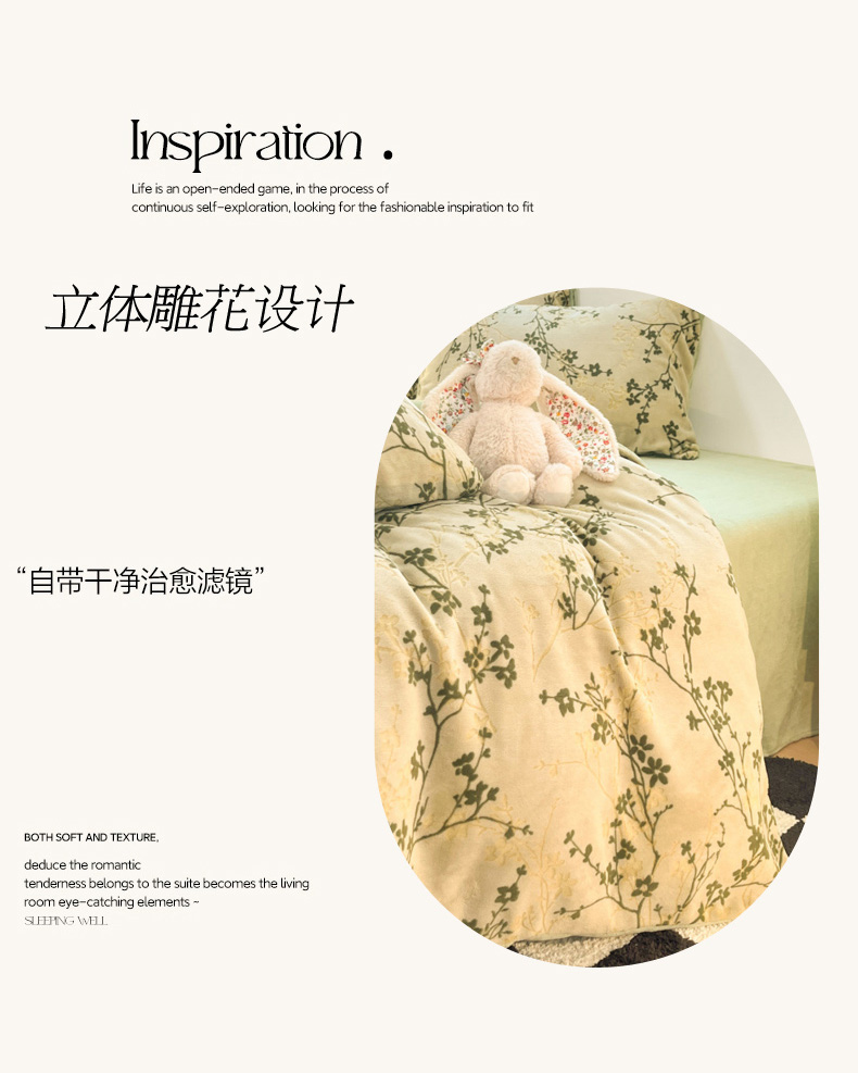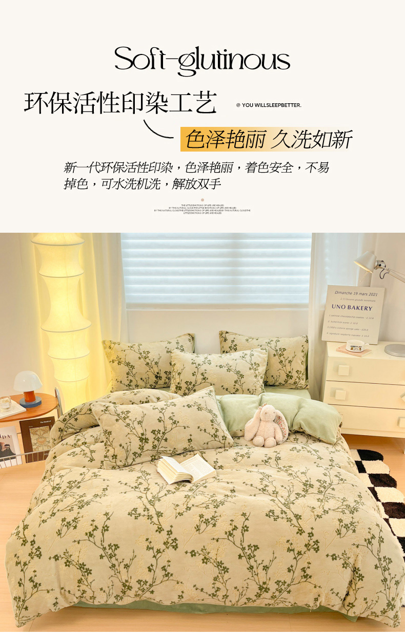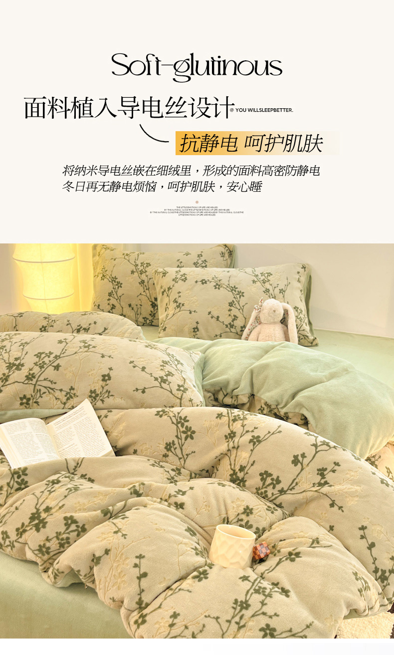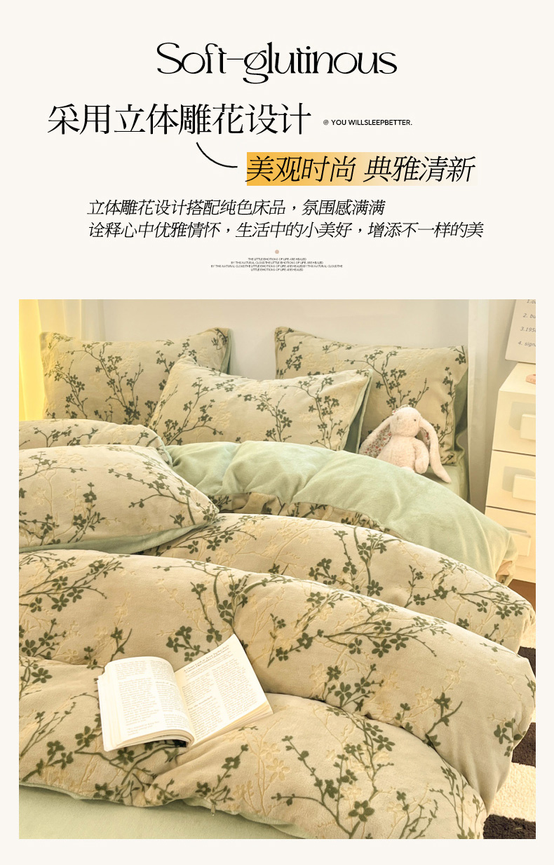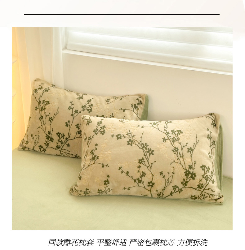 当前位置: 91家纺网 > 商品网购 > 床品套件 > 四件套 > 牛奶绒四件套 > 沐慕 2025新款A类220g加厚烂花牛奶绒B类200g牛奶绒四件套 山茶花语绿