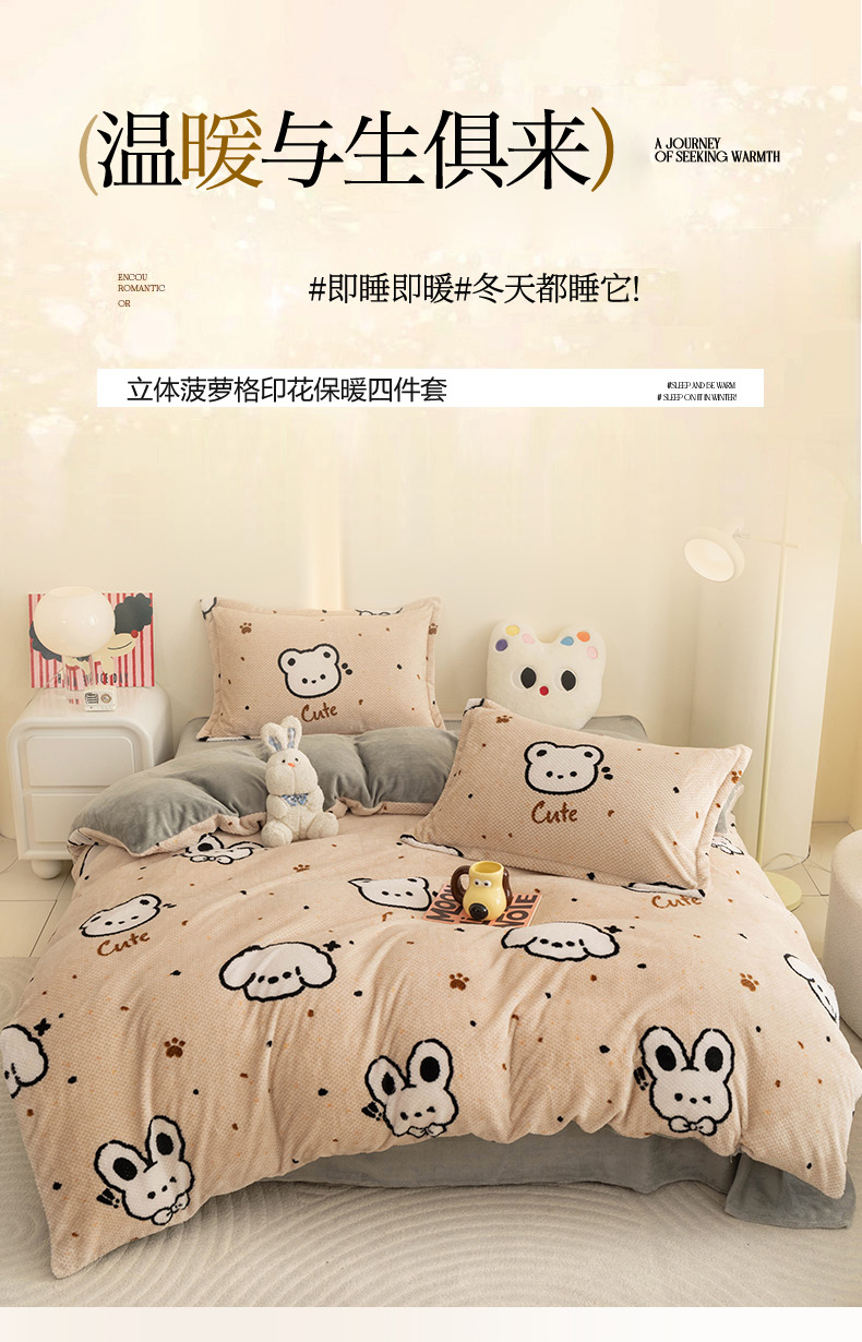 当前位置: 91家纺网 > 商品网购 > 床品套件 > 四件套 > 其它四件套 > 倾慕家纺 2026新款立体菠萝格印花保暖四件套 米粒乐园