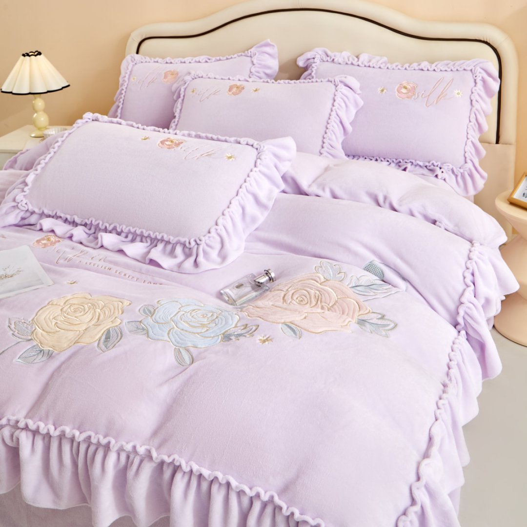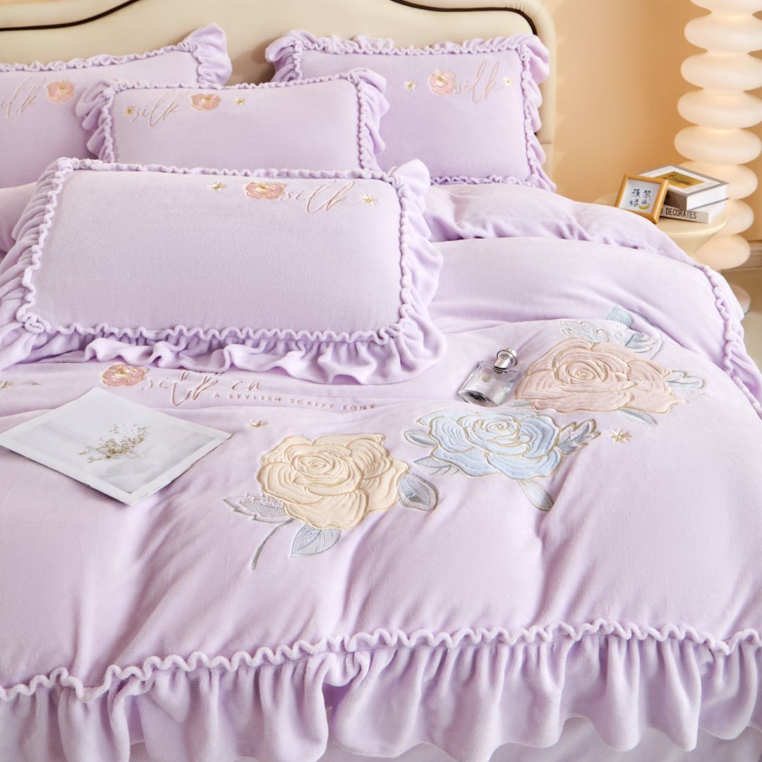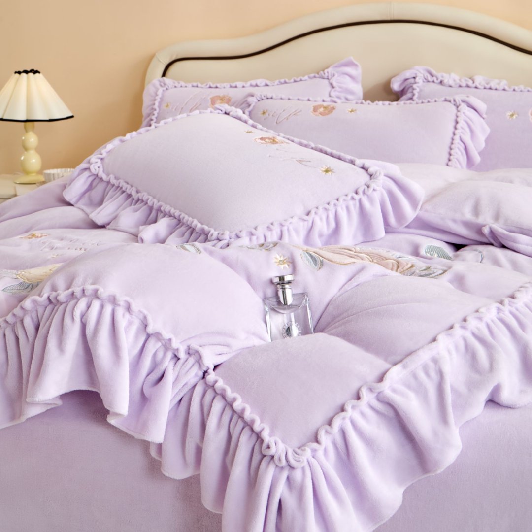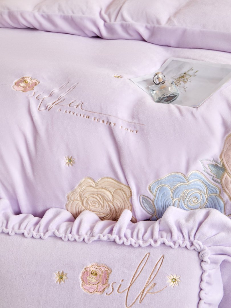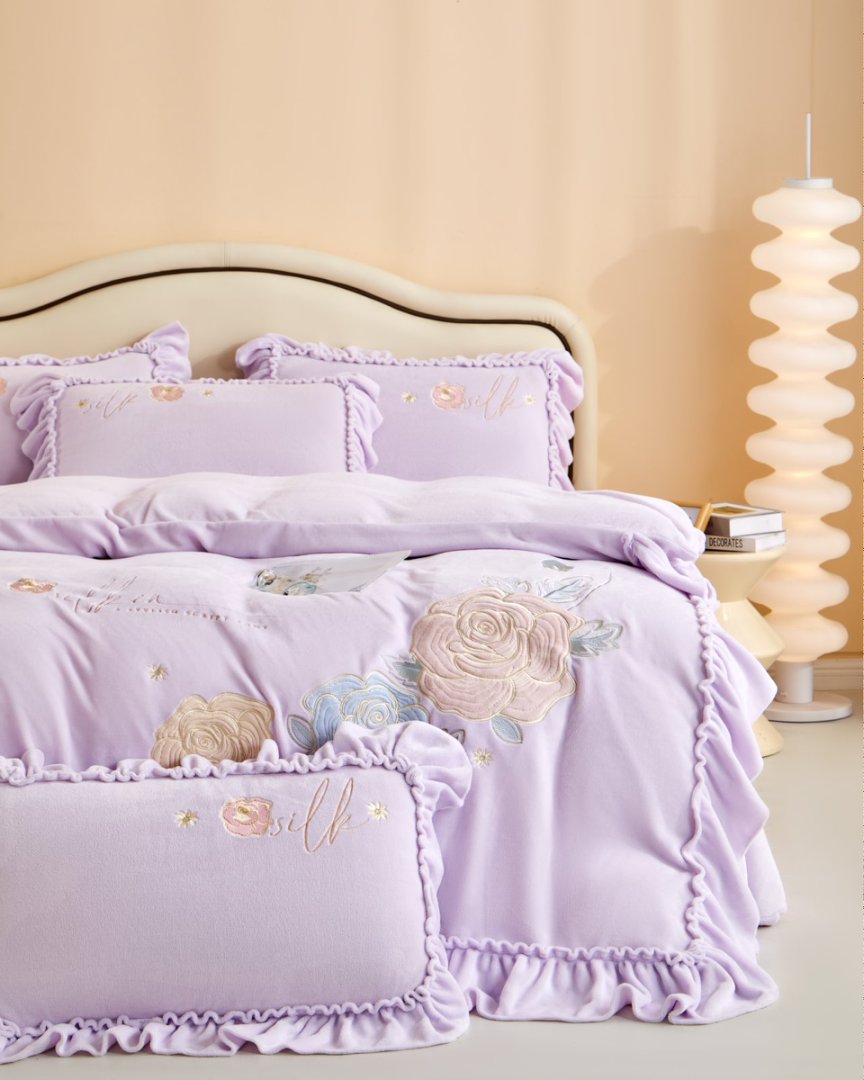 (总)七里香 2025新款牛奶绒刺绣四件套-枝意系列,枝意-粉玉,枝意-蓝色,枝意-米黄,枝意-紫色