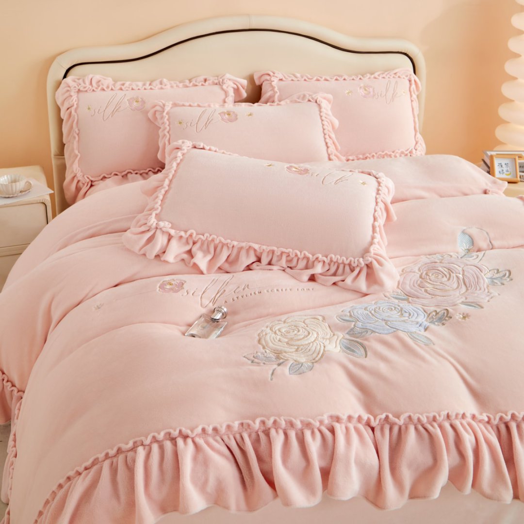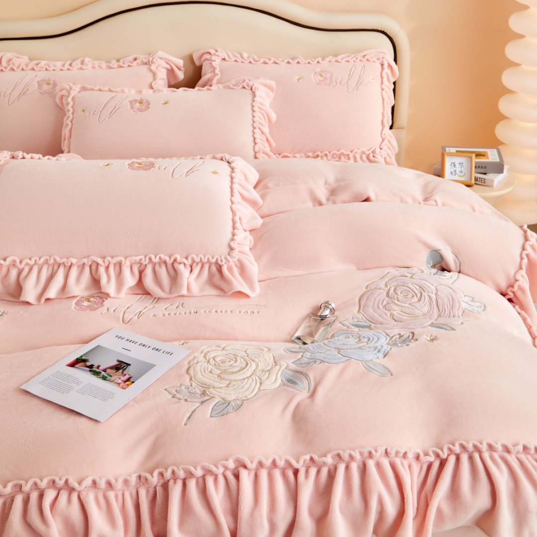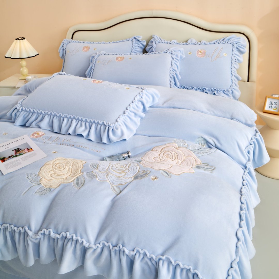 (总)七里香 2025新款雕花绒牛奶绒刺绣四件套-锦穗绒华系列,锦穗绒华-粉玉,锦穗绒华-蓝色,锦穗绒华-米黄,锦穗绒华-紫色