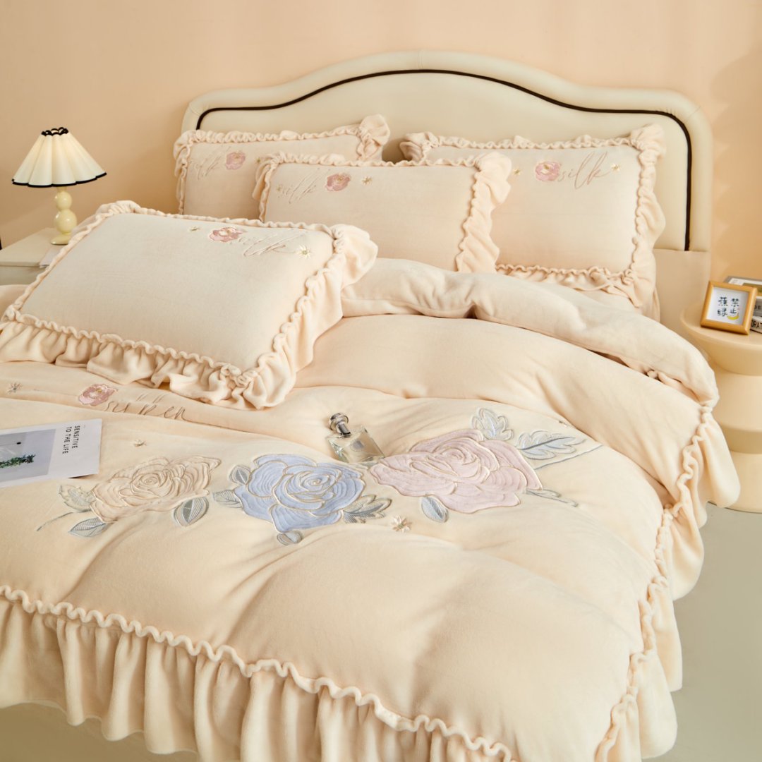 商品名称:(总)七里香 2025新款牛奶绒刺绣四件套-枝意系列