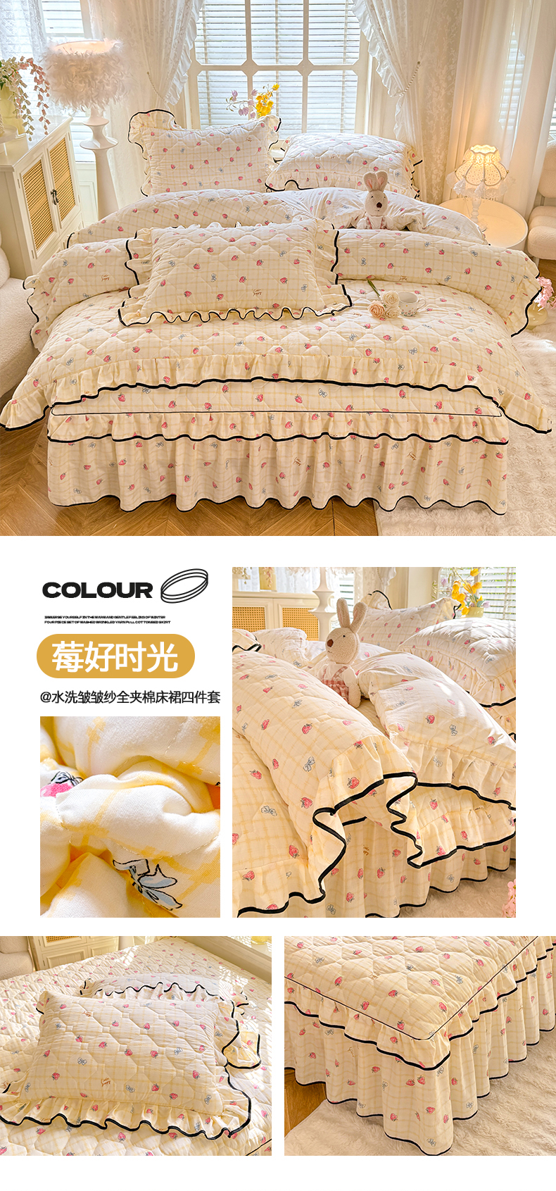 (总)优家居 2025新品水洗棉全夹棉床裙四件套韩版糯糯棉水洗皱皱纱床罩花边被套枕套直播爆款,莓好时光,秘园絮语,花花田园,爱心蝴蝶结,巴宝格-咖,豹纹-咖,蝶舞芳华,繁花似锦,粉色猫猫,粉雾结语,陌上花开,紫雾花园