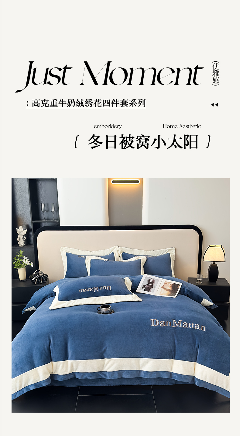 (总)苹果星家纺 2025新款高克重纯色牛奶绒刺绣四件套-奢香夫人,奢香夫人-粉,奢香夫人-杏,奢香夫人-紫,奢香夫人-蓝