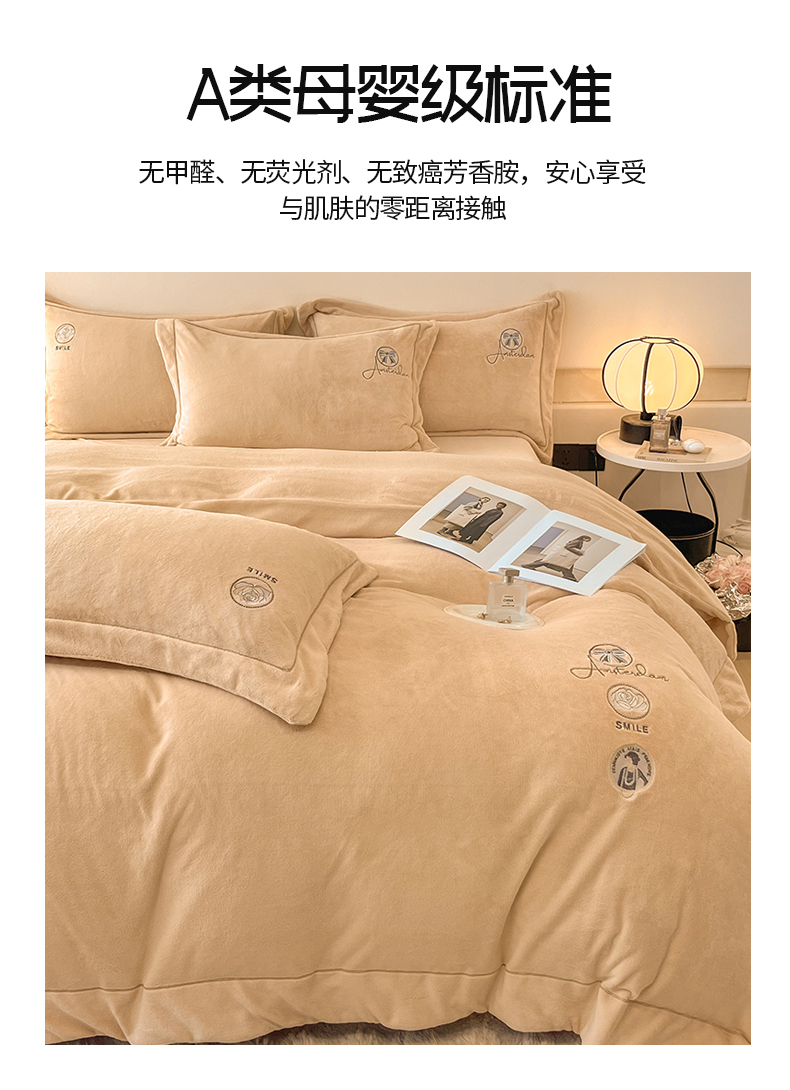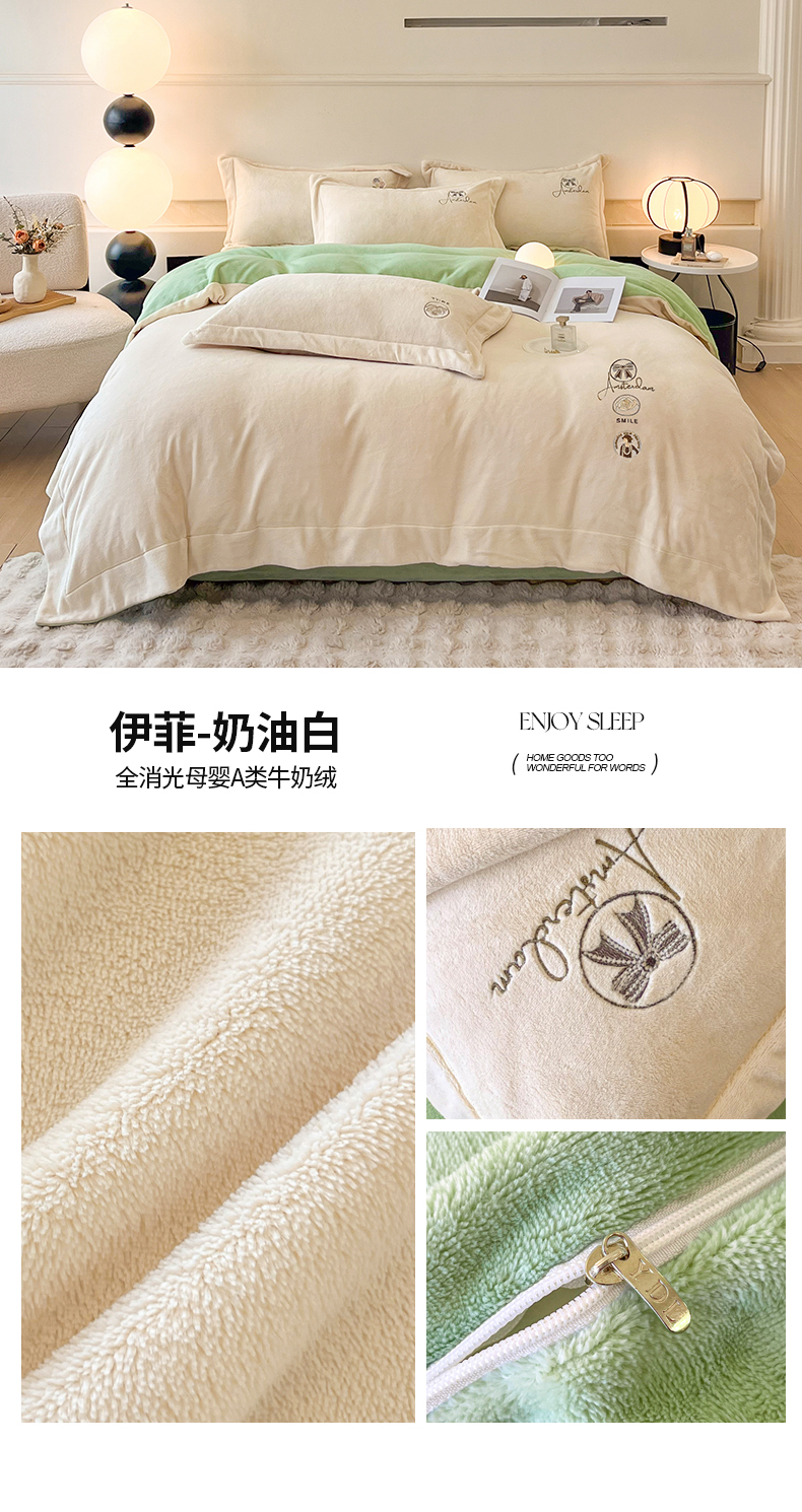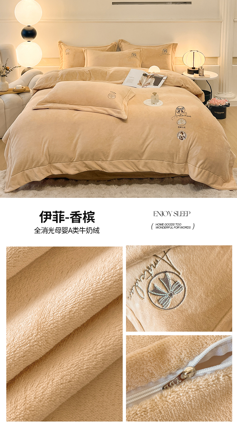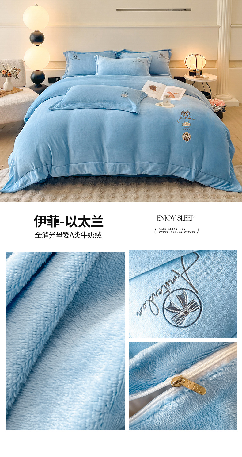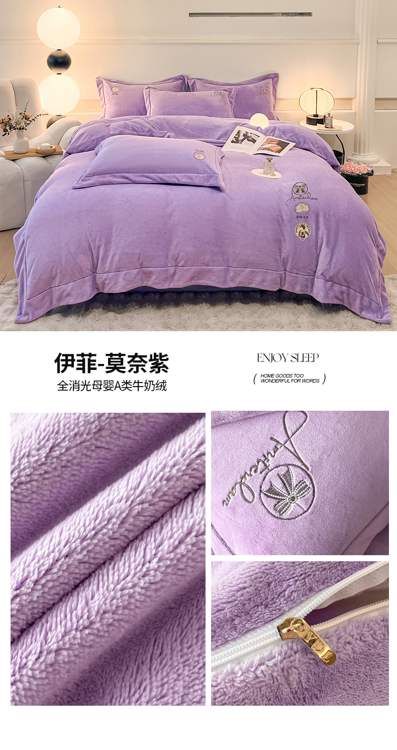 商品名称:(总)专版花型 2025年新款9.2斤240克全消光A类大刺绣牛奶绒四件套-伊菲