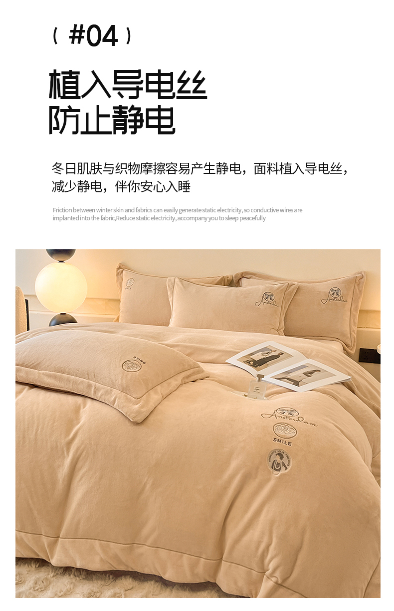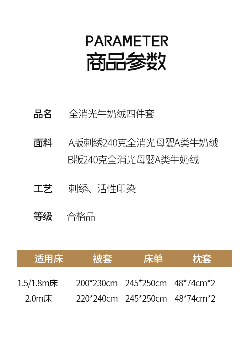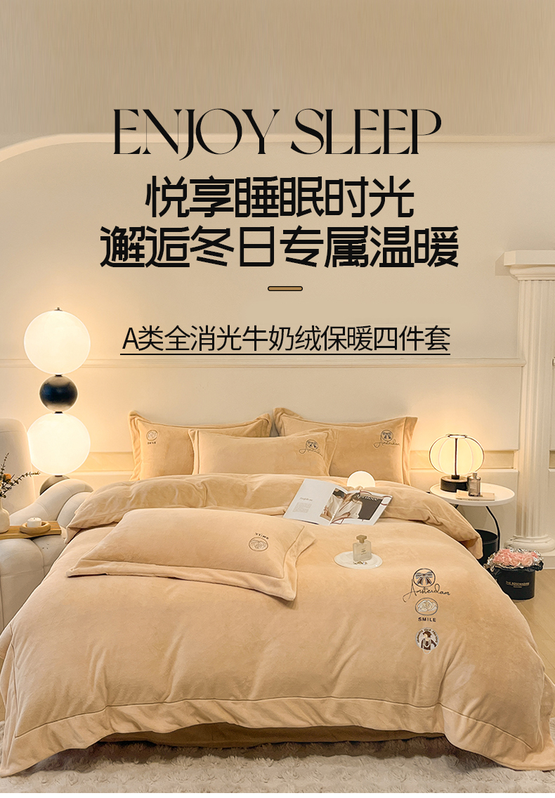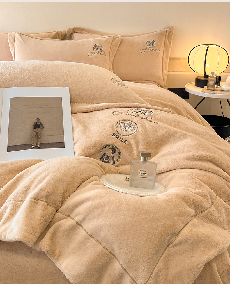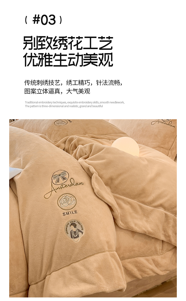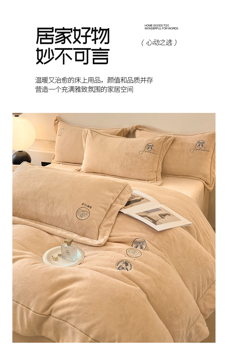 商品名称:(总)专版花型 2025年新款9.2斤240克全消光A类大刺绣牛奶绒四件套-伊菲