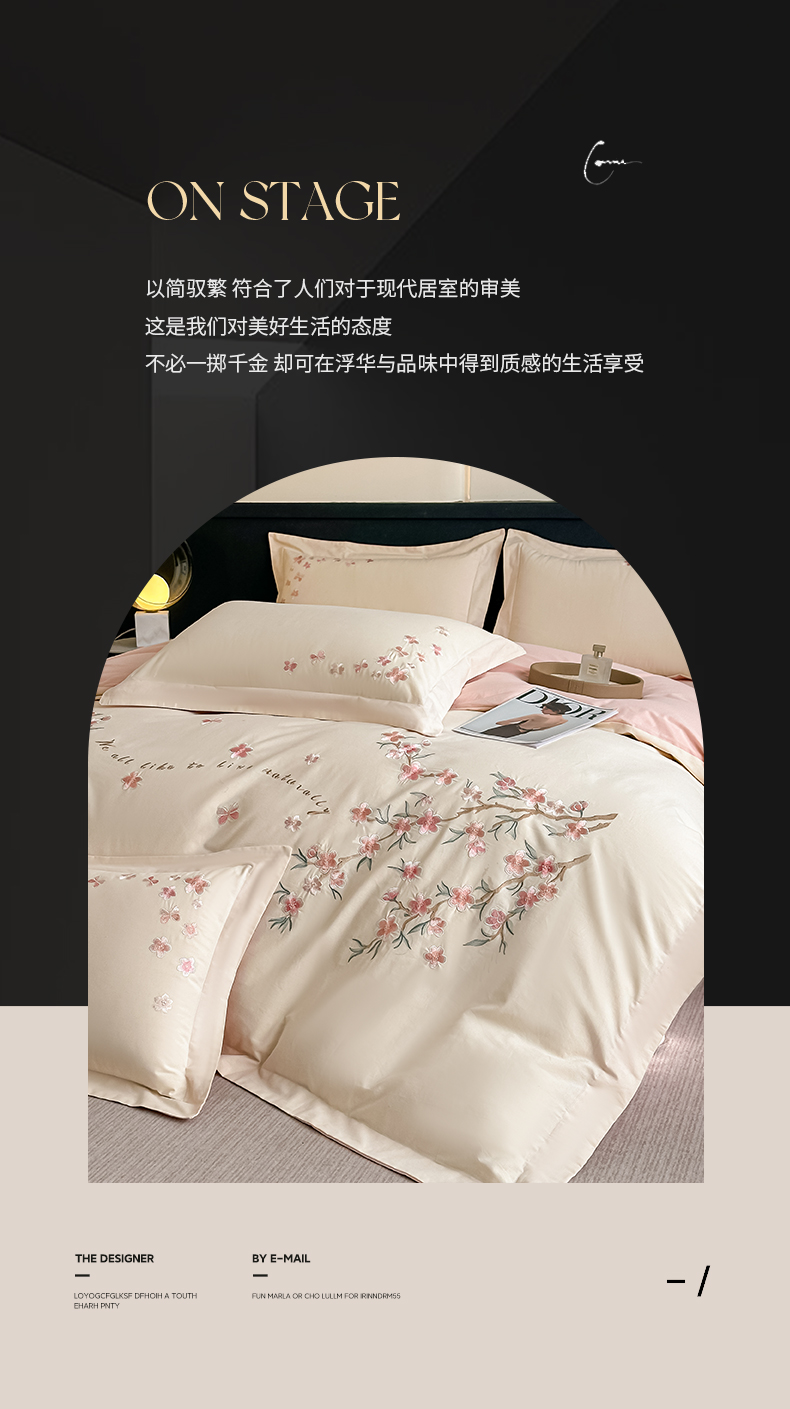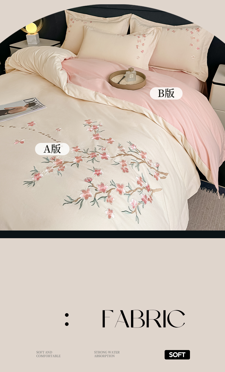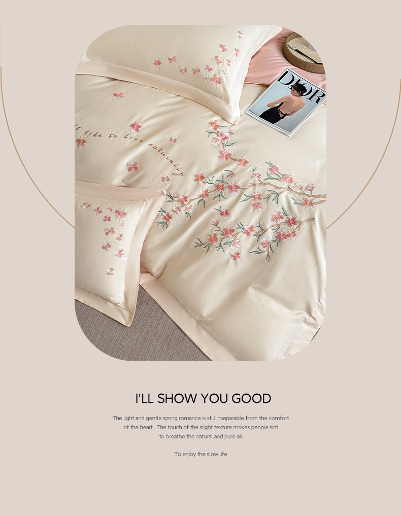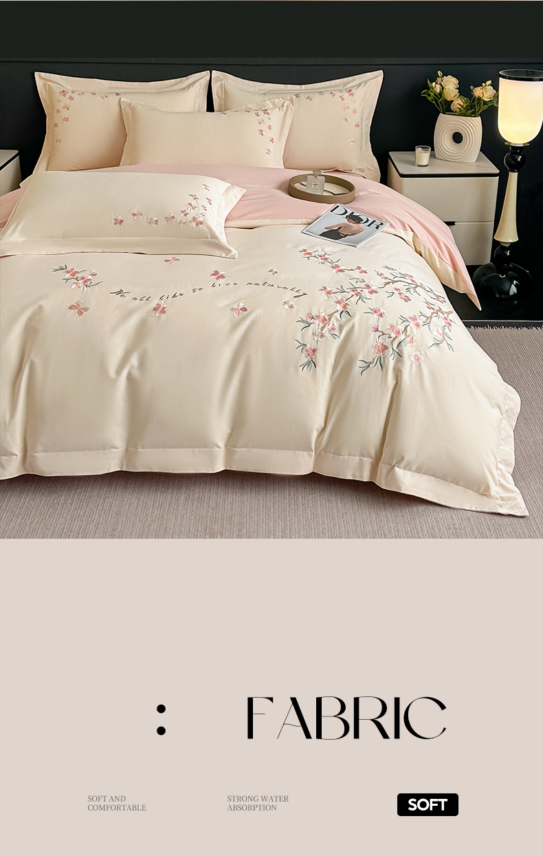 (总)桃园 2025新款纯棉全棉长绒棉刺绣绣花四件套(高端礼盒)-叶语,叶语-飘蓝,叶语-轻奢粉,叶语-绅士灰,叶语-香槟金