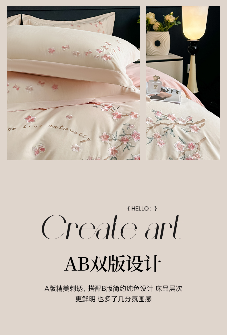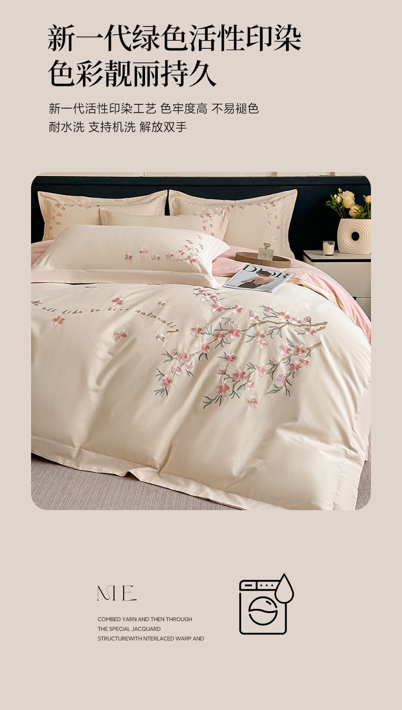 (总)桃园 新款纯棉全棉长绒棉刺绣绣花高端礼盒四件套-卡尔系列,卡尔 香芋紫,卡尔 飘蓝,卡尔 香槟,卡尔 轻奢粉
