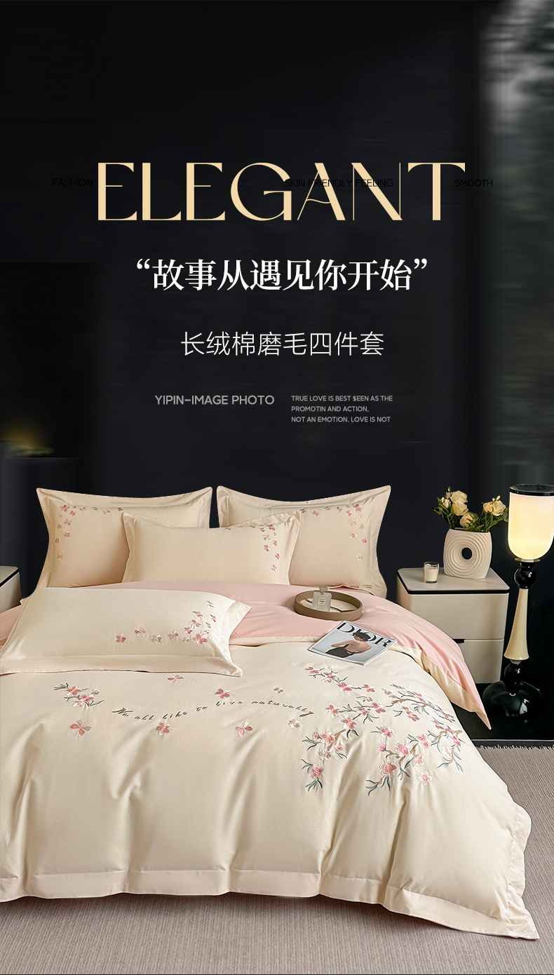 (总)桃园 新款纯棉全棉长绒棉磨毛不掉毛四件套高端礼盒-蝶町系列(包含买家秀),白粉,飘蓝,香芋紫,轻奢粉