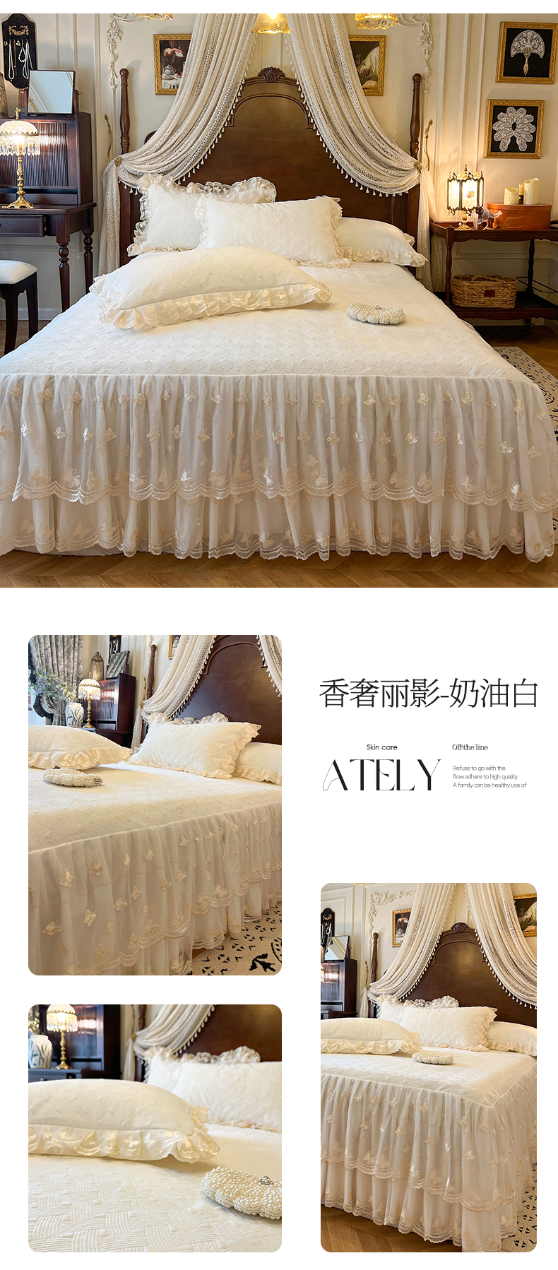 (总)瑞宝 2025新款雕花牛奶绒花边夹棉床盖四件套-莫妮卡,奶昔白,抹茶绿,奶茶咖,少女粉,雾蓝