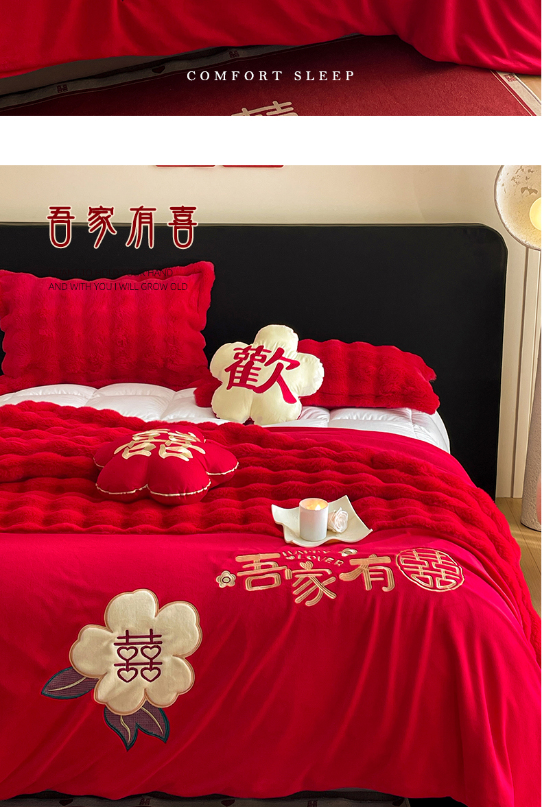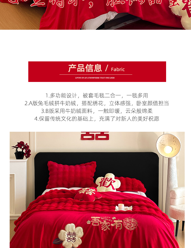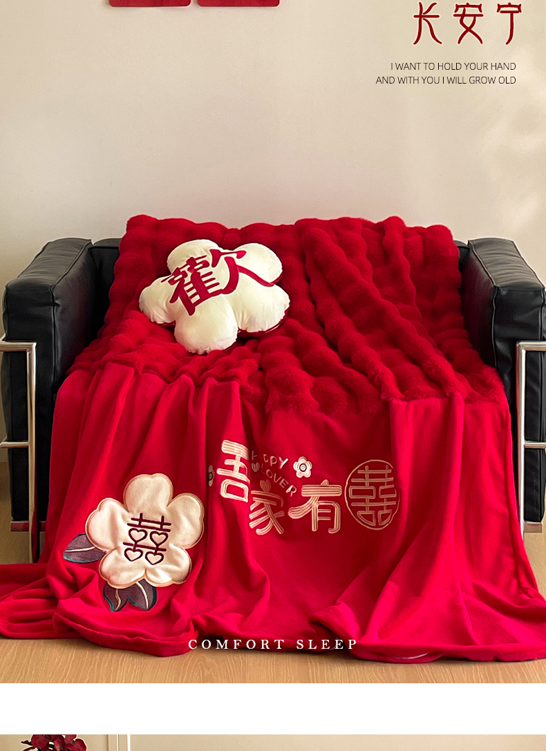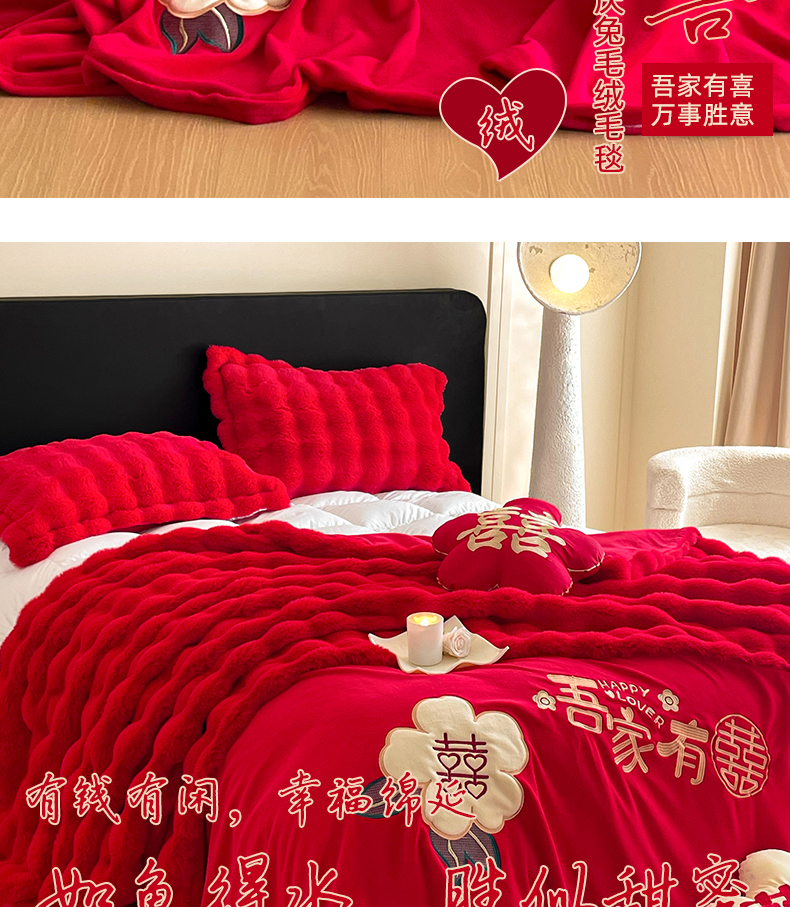 (总)玉雅家纺 2025新款兔毛绒多功能毛毯被套两用豆豆被被子被芯,婚庆毛毯-双喜临门,婚庆毛毯-龙凤团圆,婚庆毛毯-相爱一生