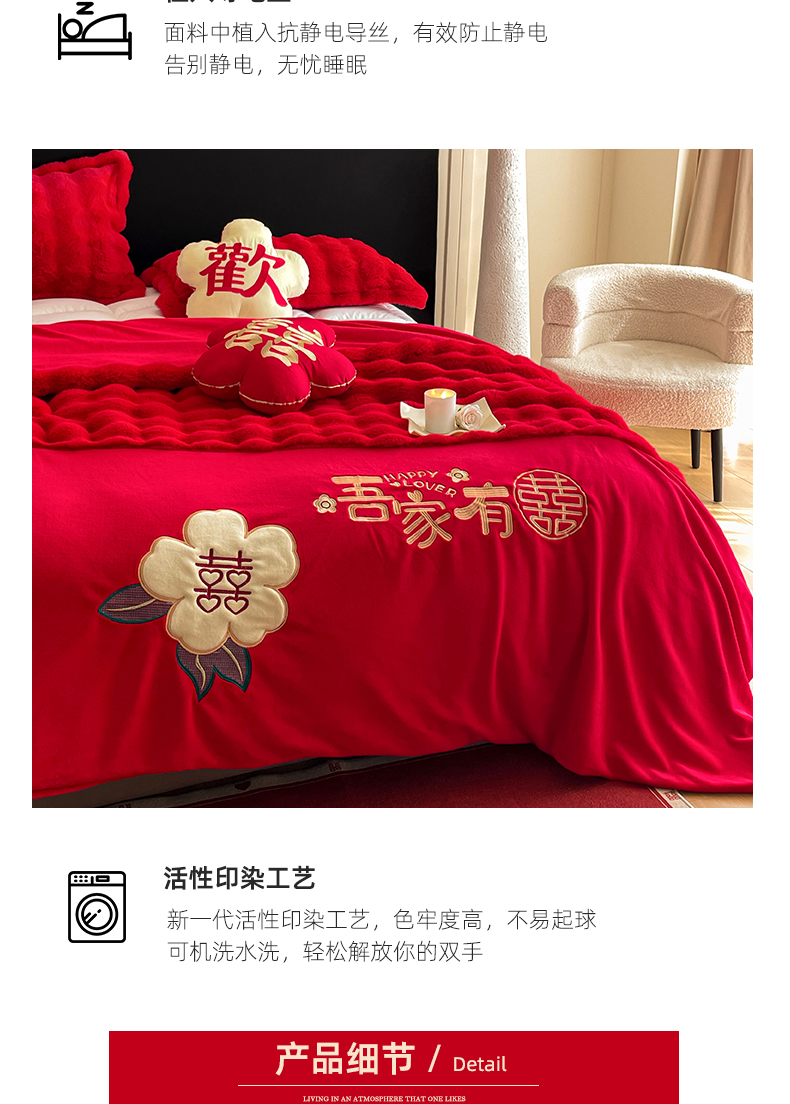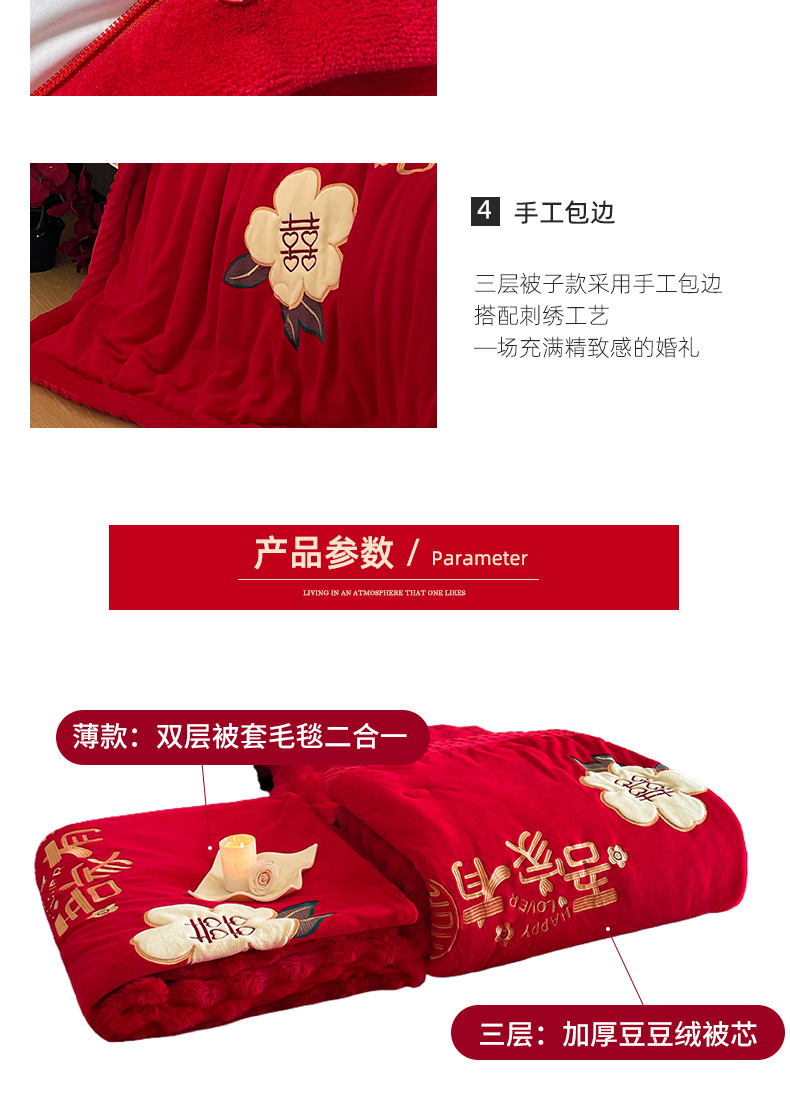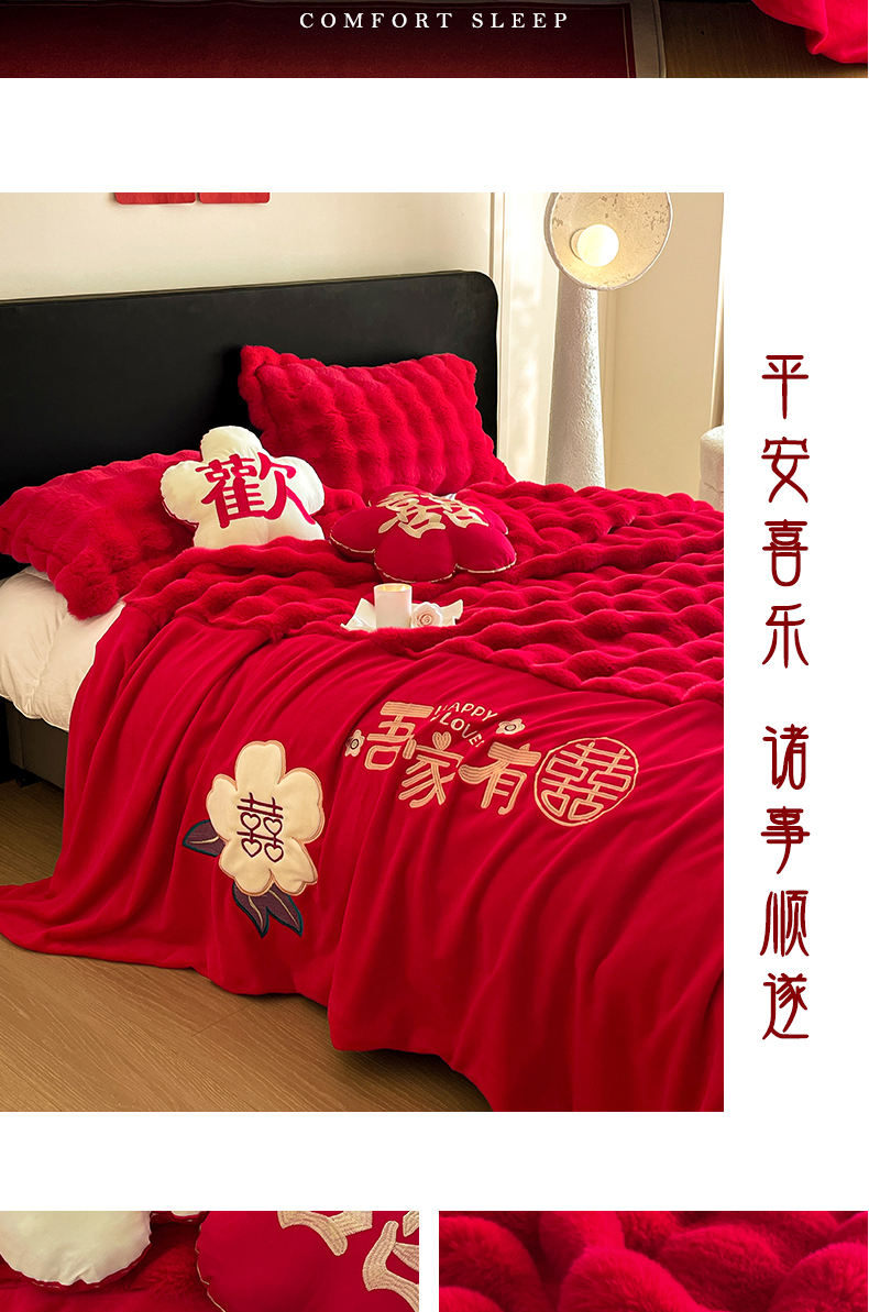 (总)玉雅家纺 2025新款婚庆两用豆豆被毛毯喜被婚庆被芯,婚庆被毯-爱情花,婚庆被毯-欢喜之心,婚庆被毯-吾家有喜,婚庆被毯-喜来到,婚庆被毯-喜乐玫瑰,婚庆被毯-喜临门