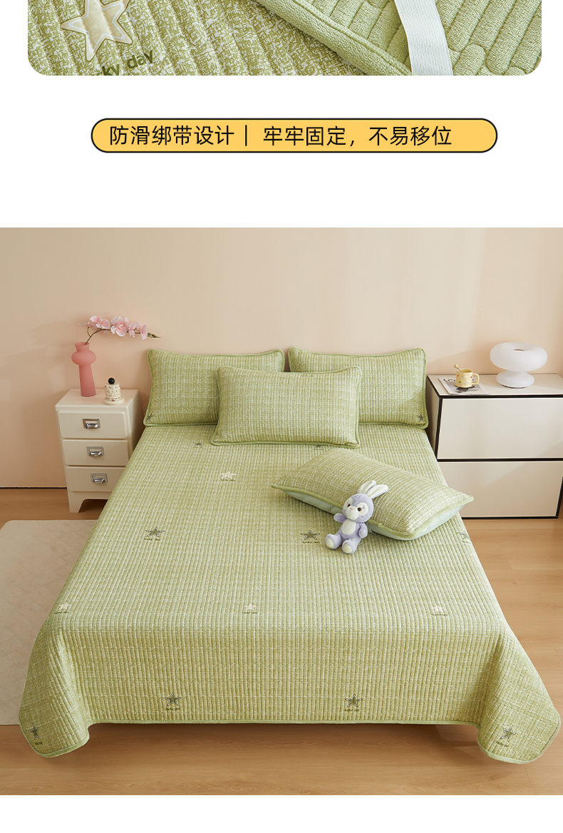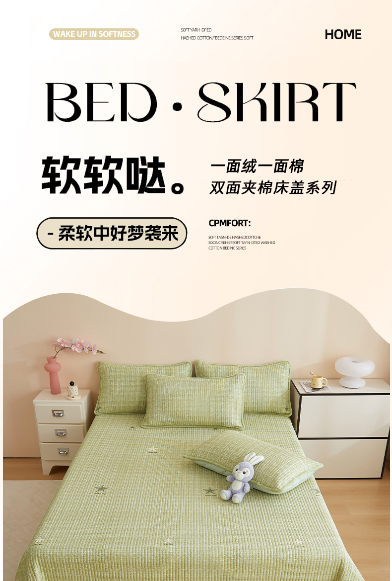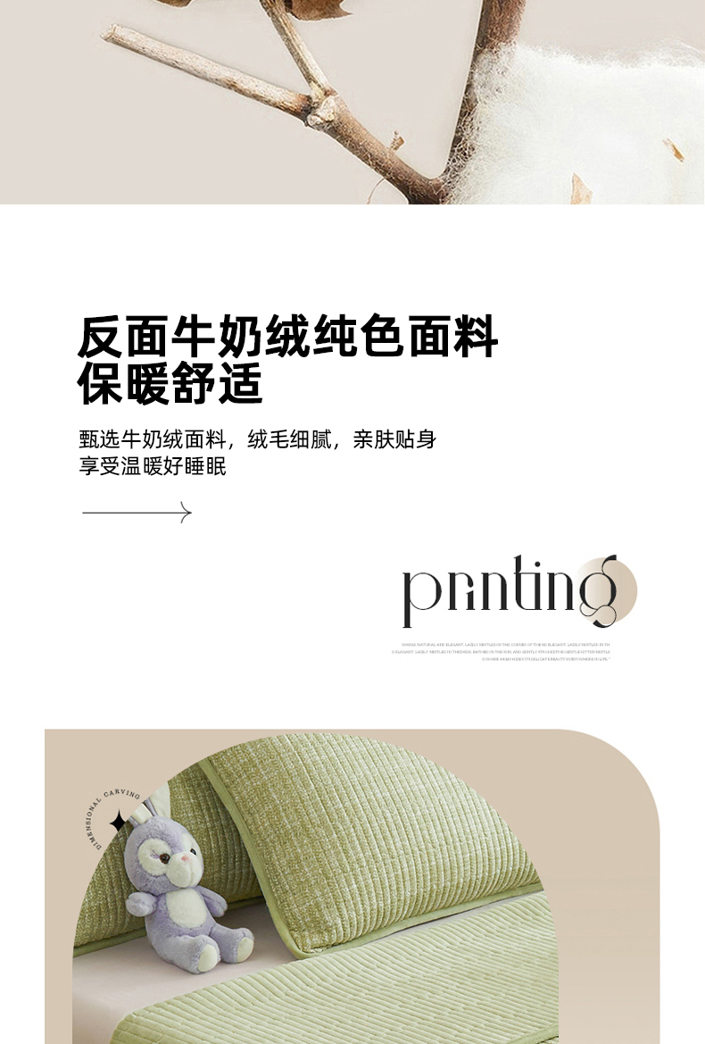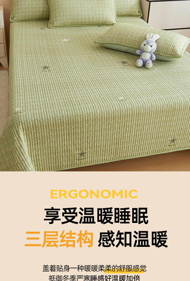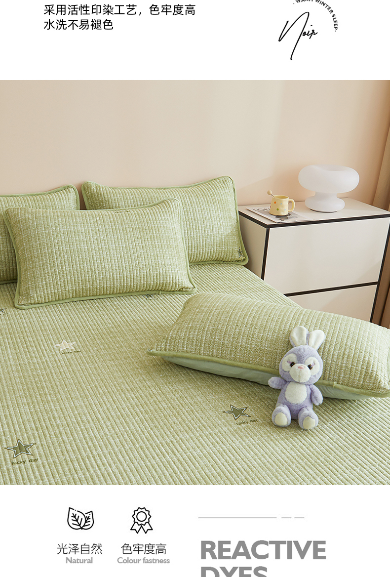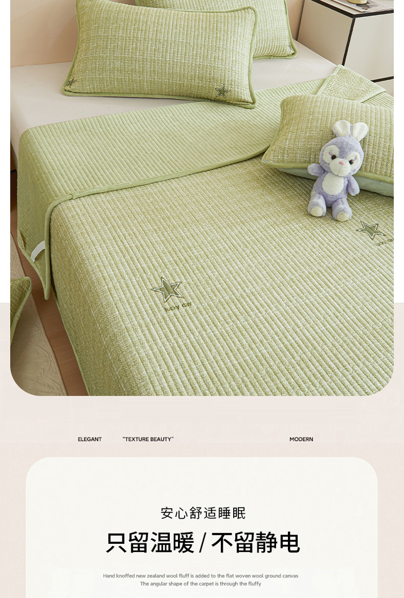 • 91家纺网 家纺一手货源 找家纺 金艾草 2025新款A版全棉印花B版加厚牛奶绒单件棉加绒床盖三件套榻榻米垫 五角星-绿色
