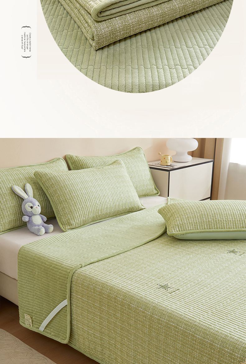 金艾草 2025新款A版全棉印花B版加厚牛奶绒单件棉加绒床盖三件套榻榻米垫 五角星-绿色