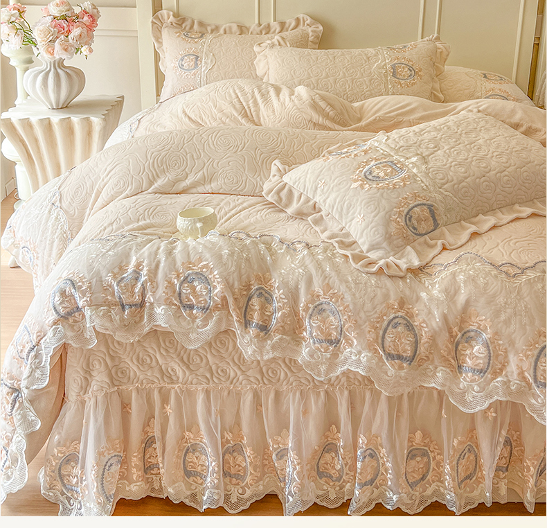 (总)恋尚 2025新款韩式蕾丝丝光棉夹棉床裙四件套,蜜芙-浅蓝,蜜芙-米黄,蜜芙-蜜桃粉,蜜芙-浅白,蜜芙-水绿,蜜芙-香芋紫