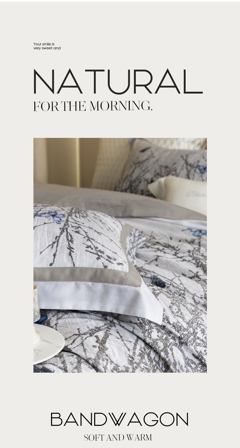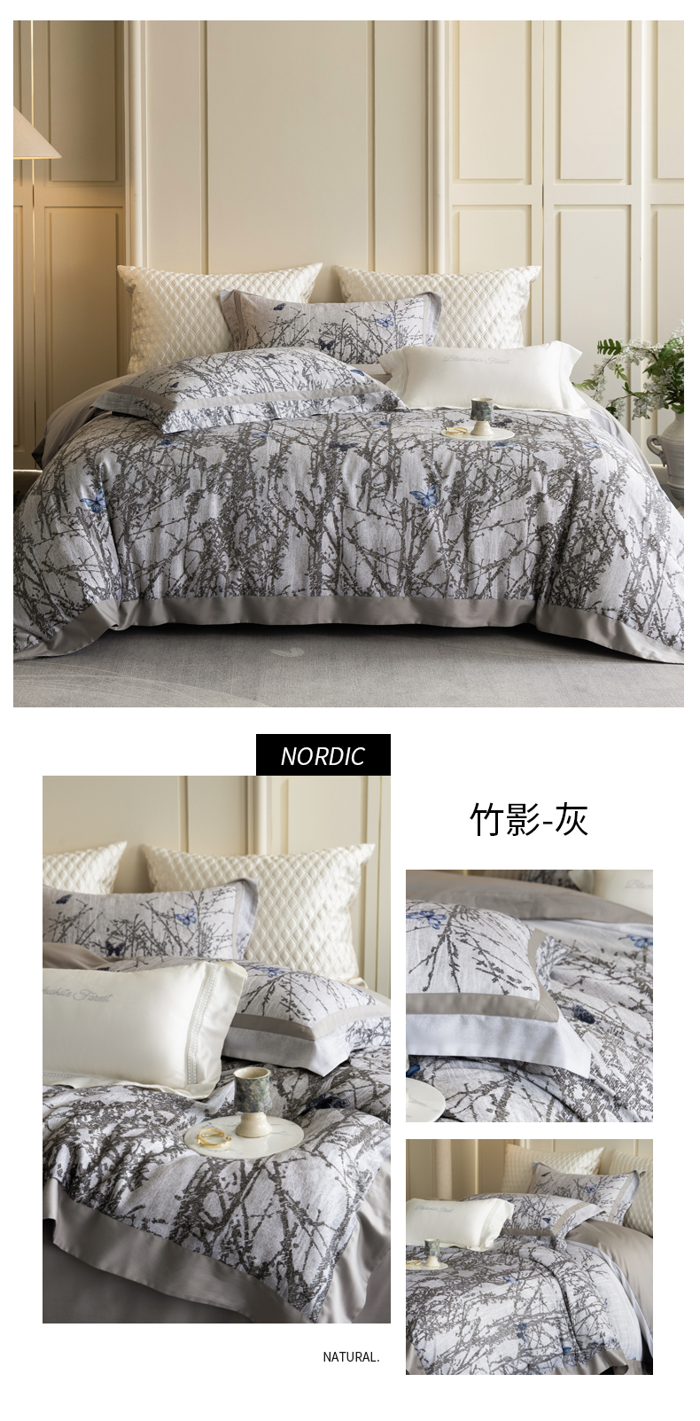商品名称:黑白森林 2025新款高支天丝棉磨毛数码印花四件套 竹影-灰