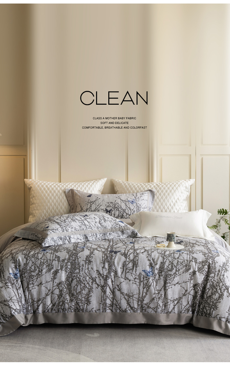 黑白森林2024款 100S支天丝棉提花四件套天丝全棉,芙拉维-裸灰,芙拉维-秋绿,圣露安-雾粉,圣露安-香槟,西西里-奶白,西西里-柔粉