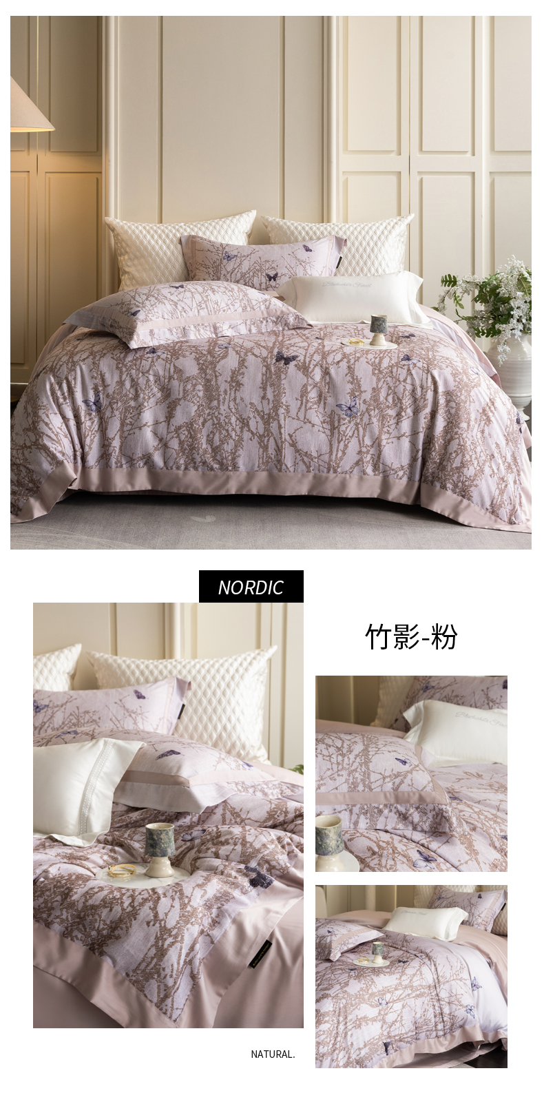 (总)黑白森林 2025新款80S超细旦天丝棉提花四件套,德尔尼-温婉白,德尔尼-珍珠灰,露华浓-雅典咖,露华浓-云杏色,维奥拉-空灵紫,维奥拉-云黛粉