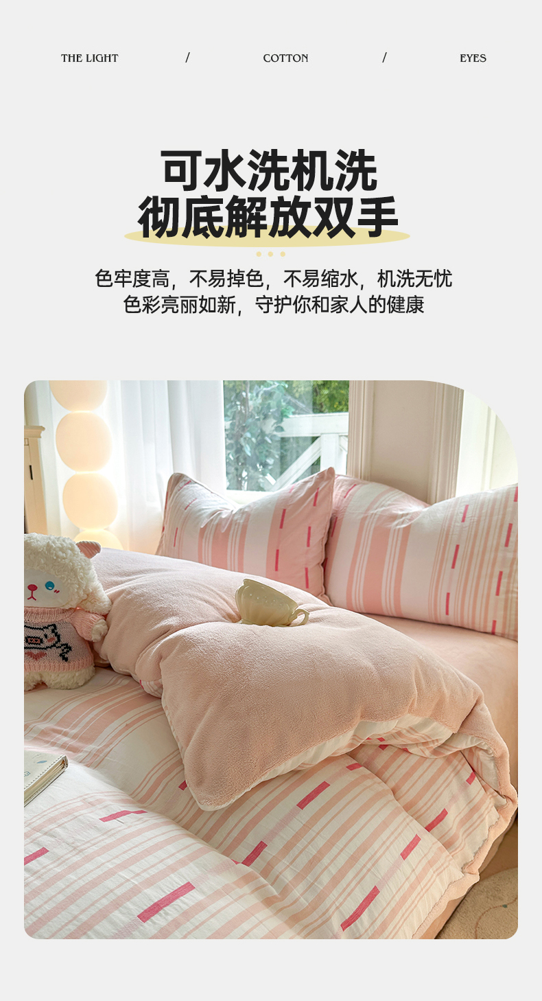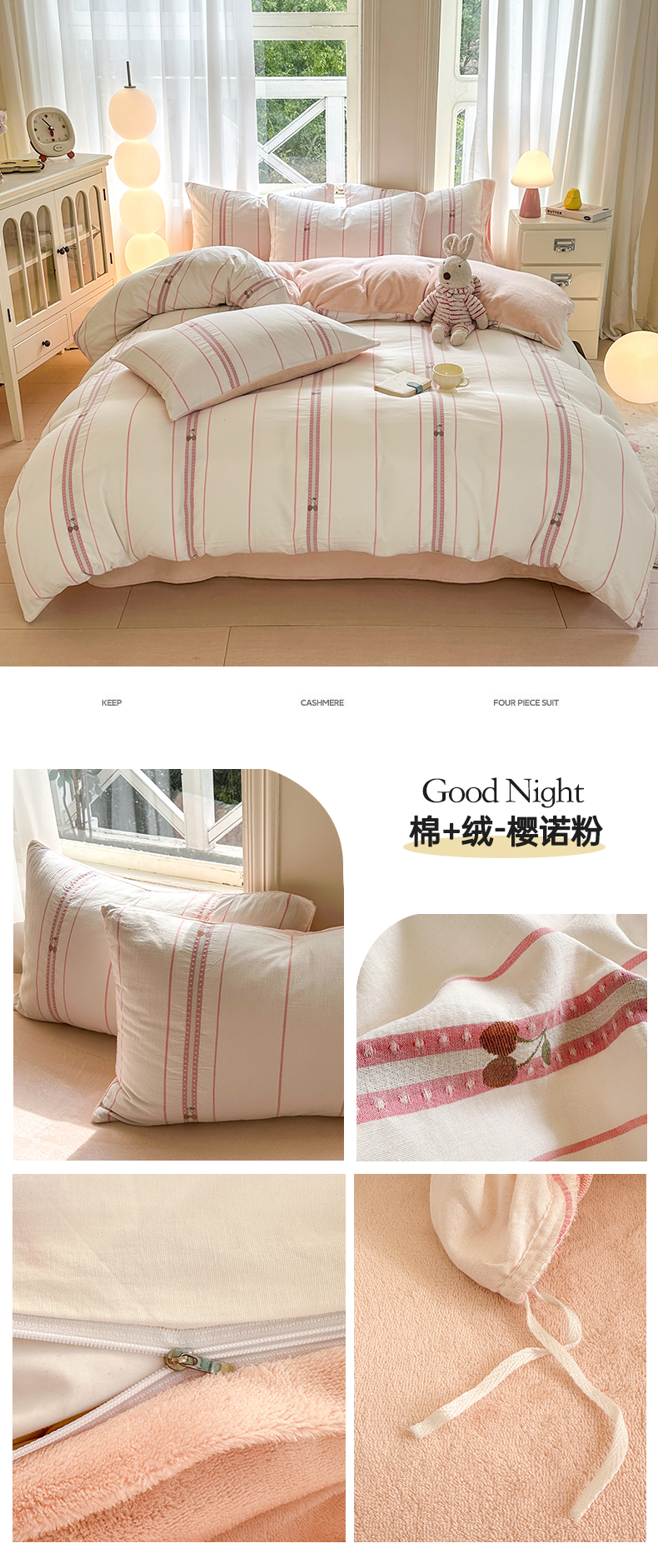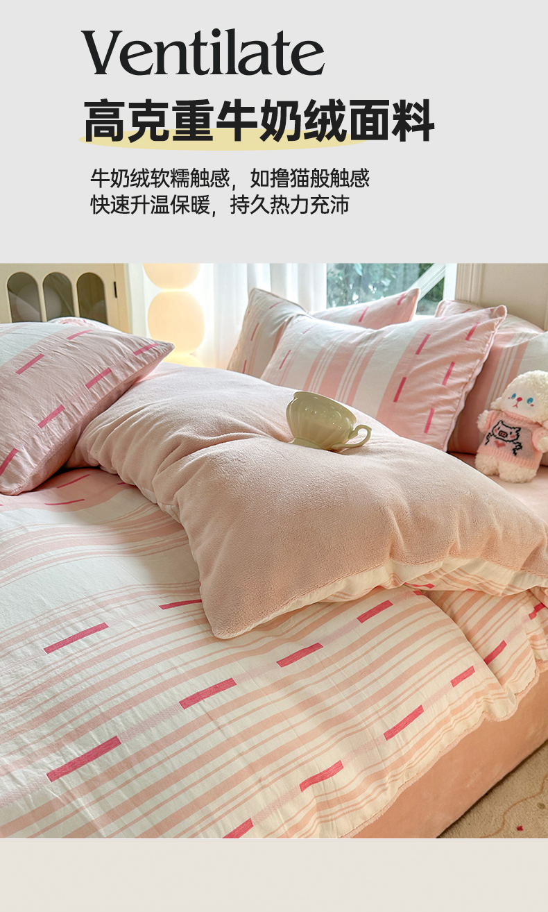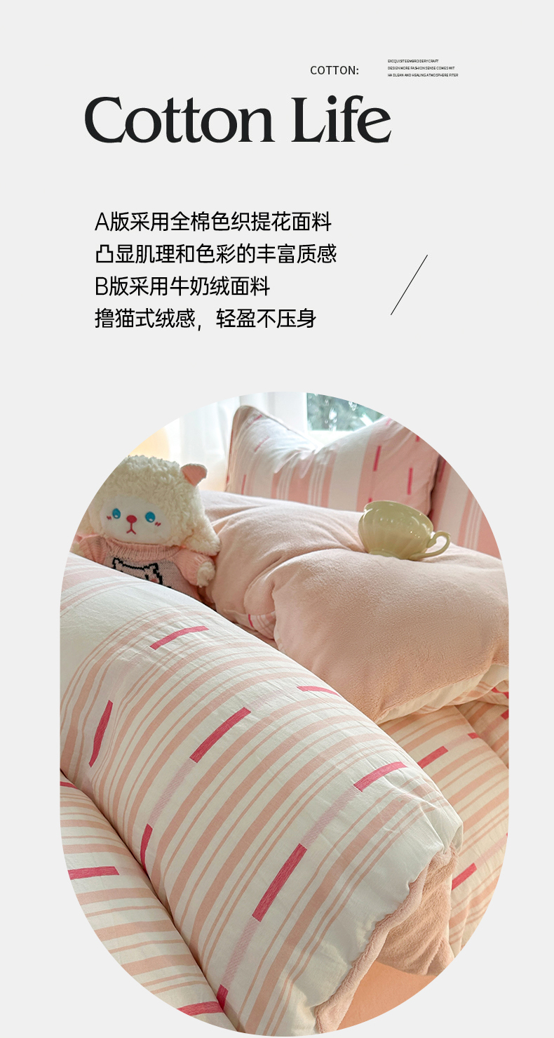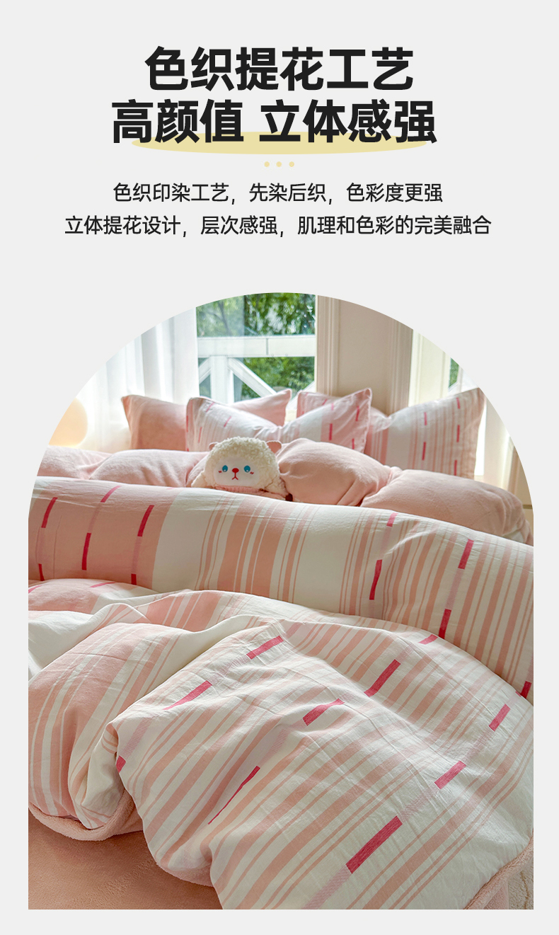 当前位置: 91家纺网 > 商品网购 > 床品套件 > 四件套 > 牛奶绒四件套 > 灰鲸 2025新款A版全棉色织提花B版牛奶绒四件套系列 棉+绒-速写粉