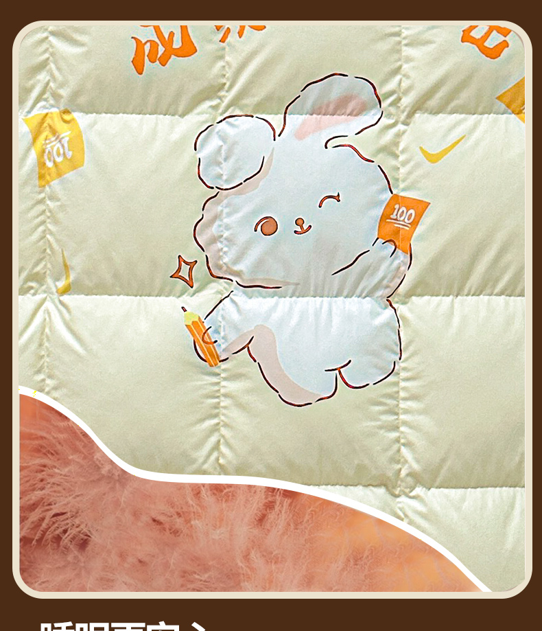 • 91家纺网 家纺一手货源 找家纺 (总)暖羽屋羽绒馆 2025新款抗菌防螨绒子含量95白鸭绒被芯1.5米儿童羽绒被子婴幼儿学生鸭绒被春秋被,成绩兔出,鸿运兔,奶糖大白兔,汽车恐龙