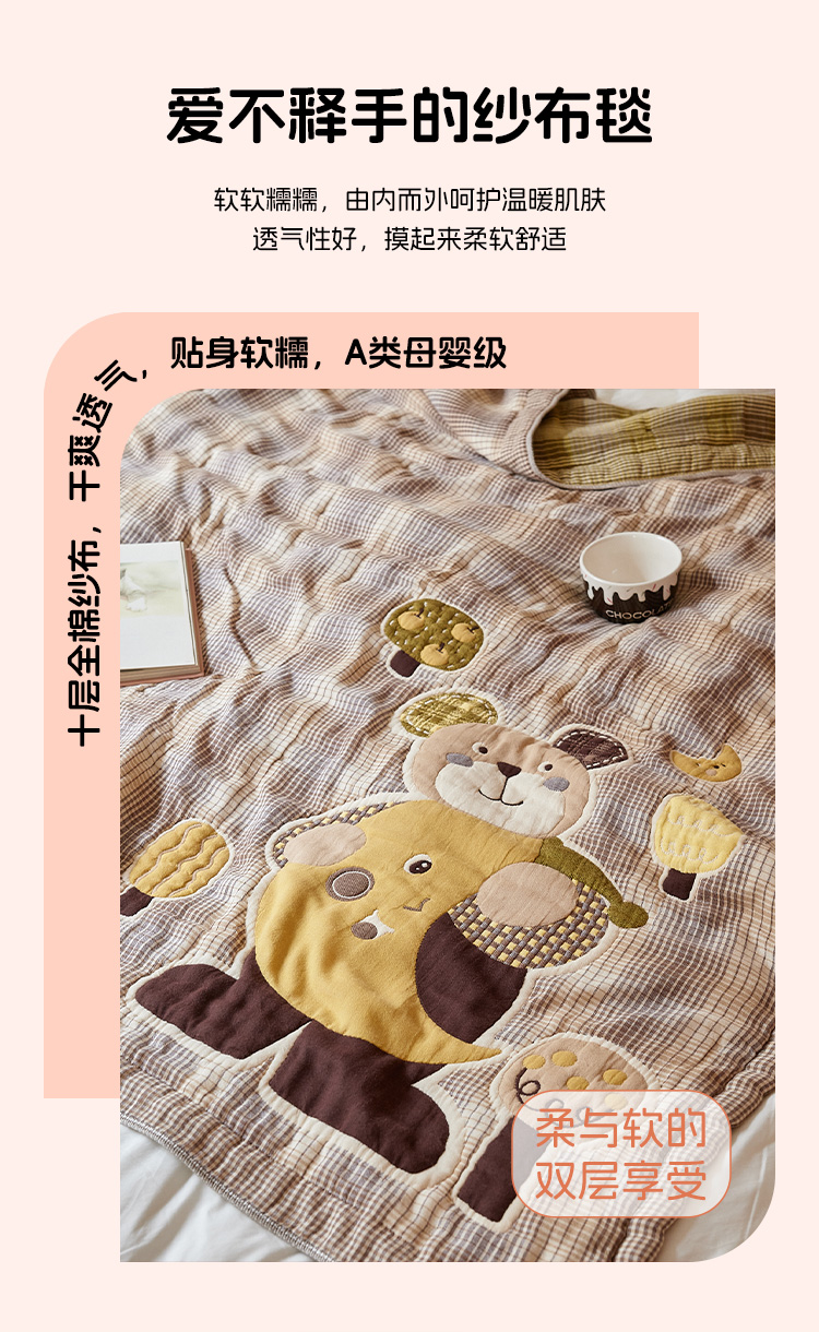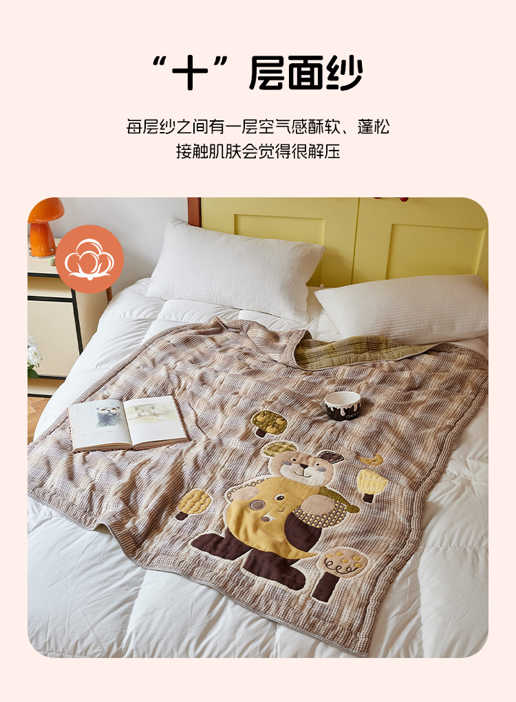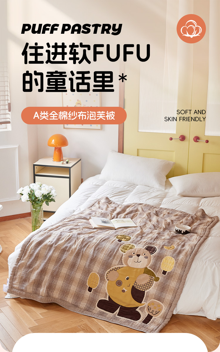 沐瑟家纺 2025新款全棉纱布泡芙被被子被芯-第二批 小熊