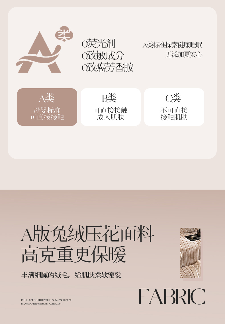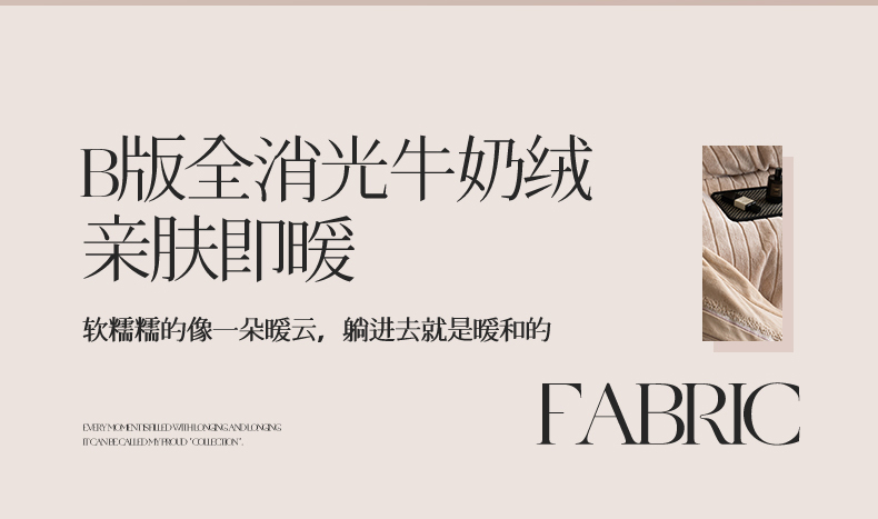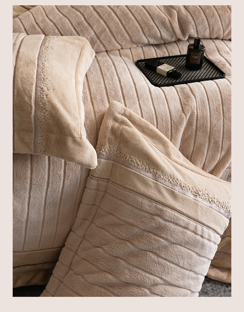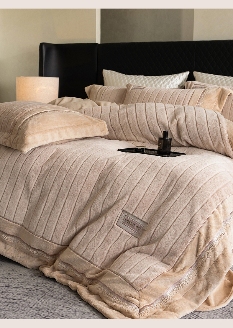 商品名称:鼎飞家纺 2025新款A类兔绒压花+全消光牛奶绒四件套--贝尔雅系列 贝尔雅-奶咖