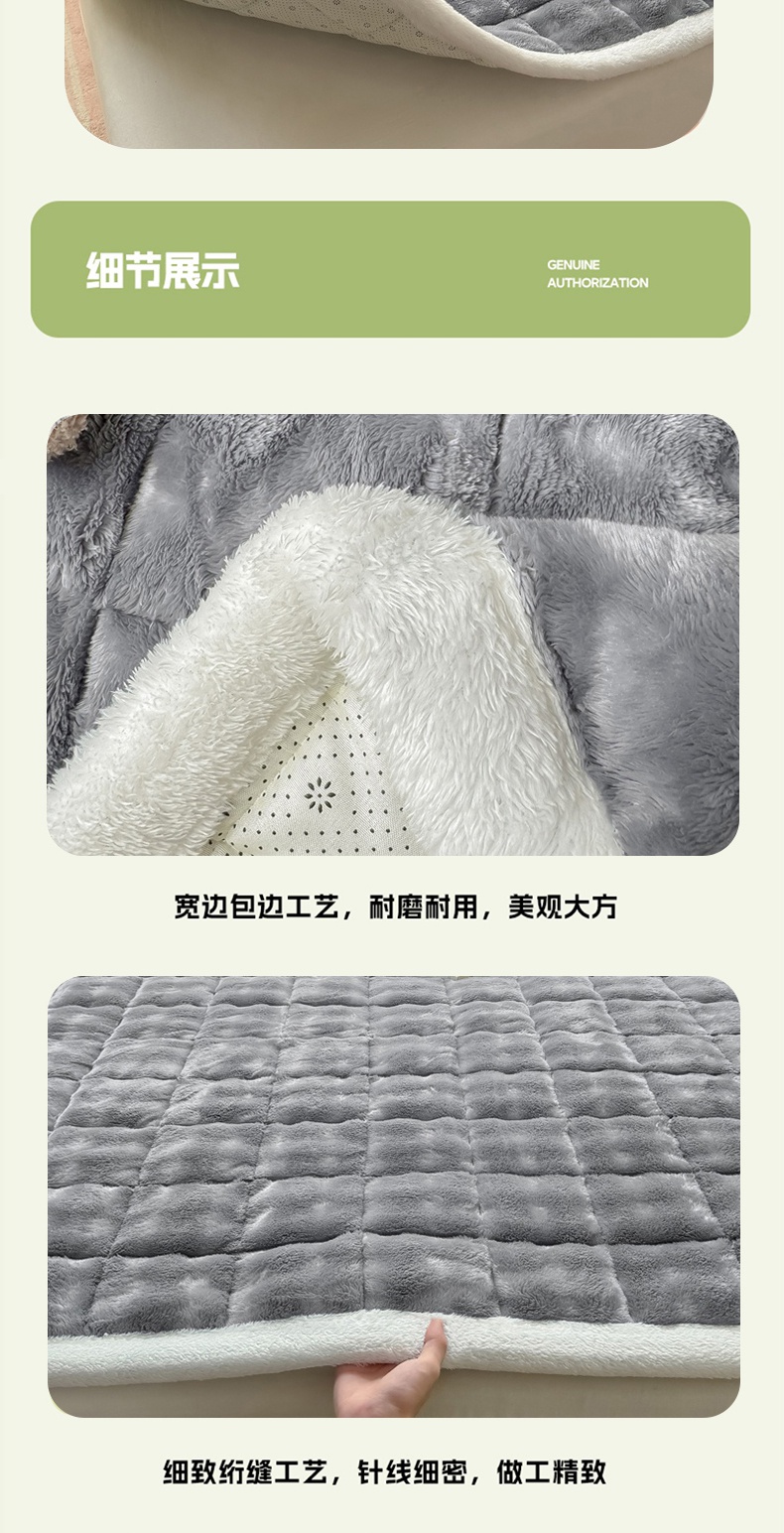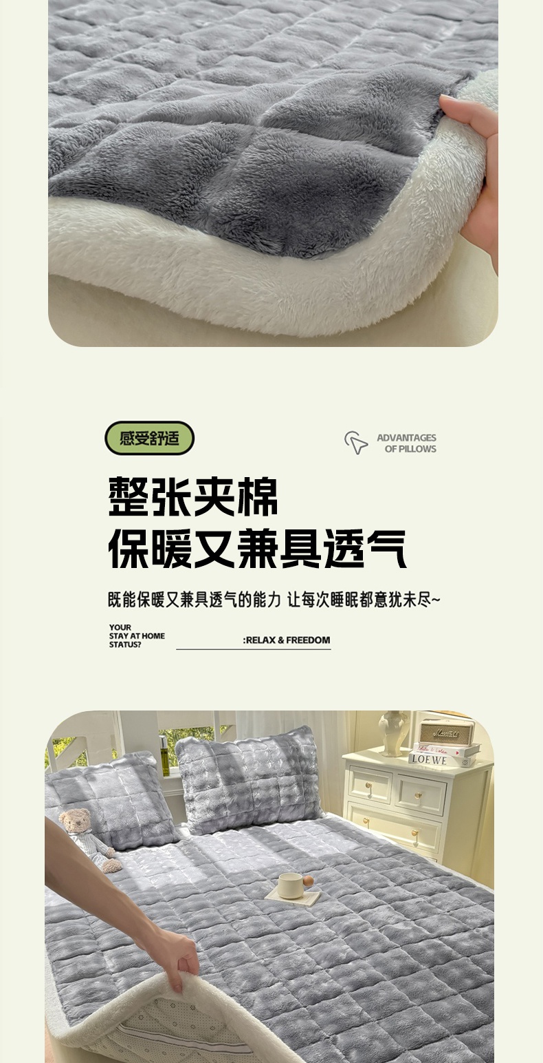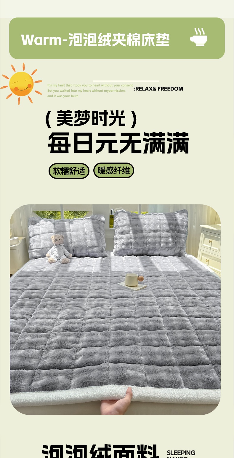 (总)麒东家纺 2025年新款兔毛绒泡泡绒夹棉床垫,粉色,咖色,绿色,米白,浅灰,深灰,天蓝