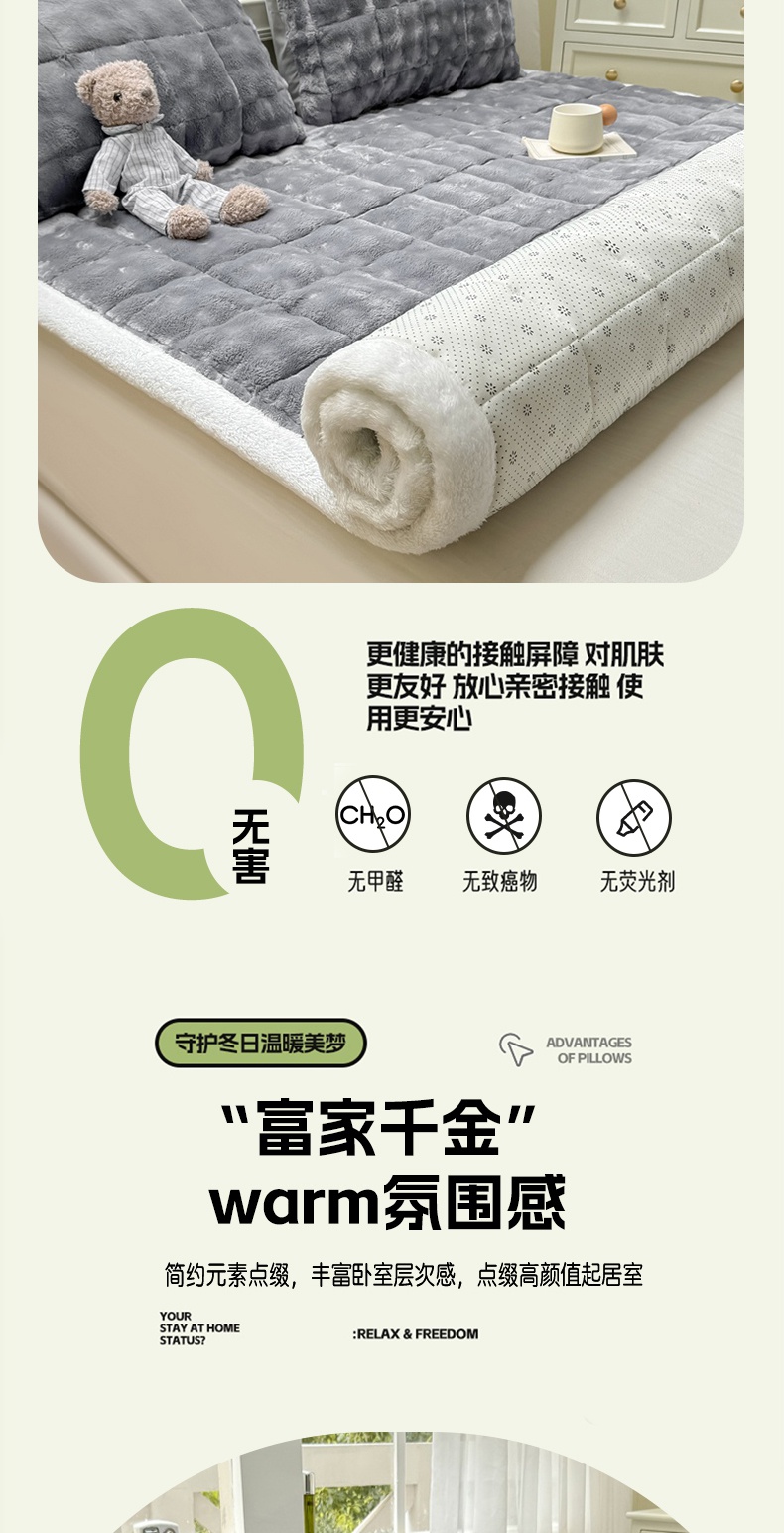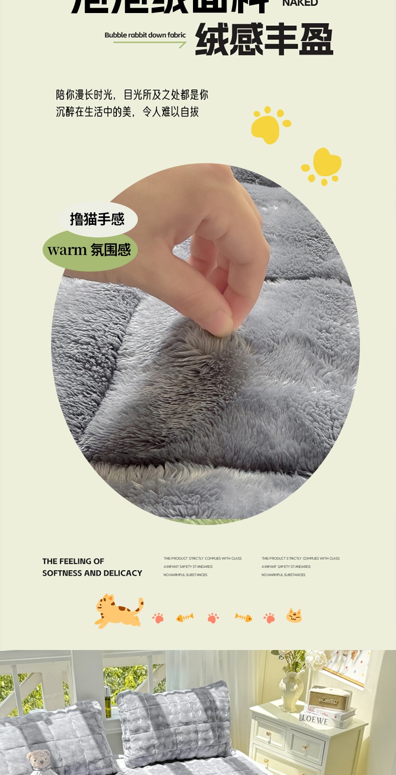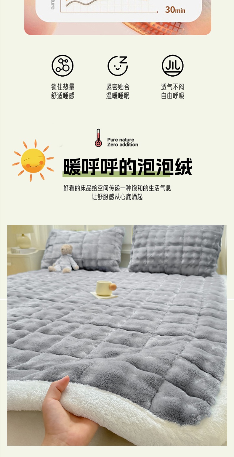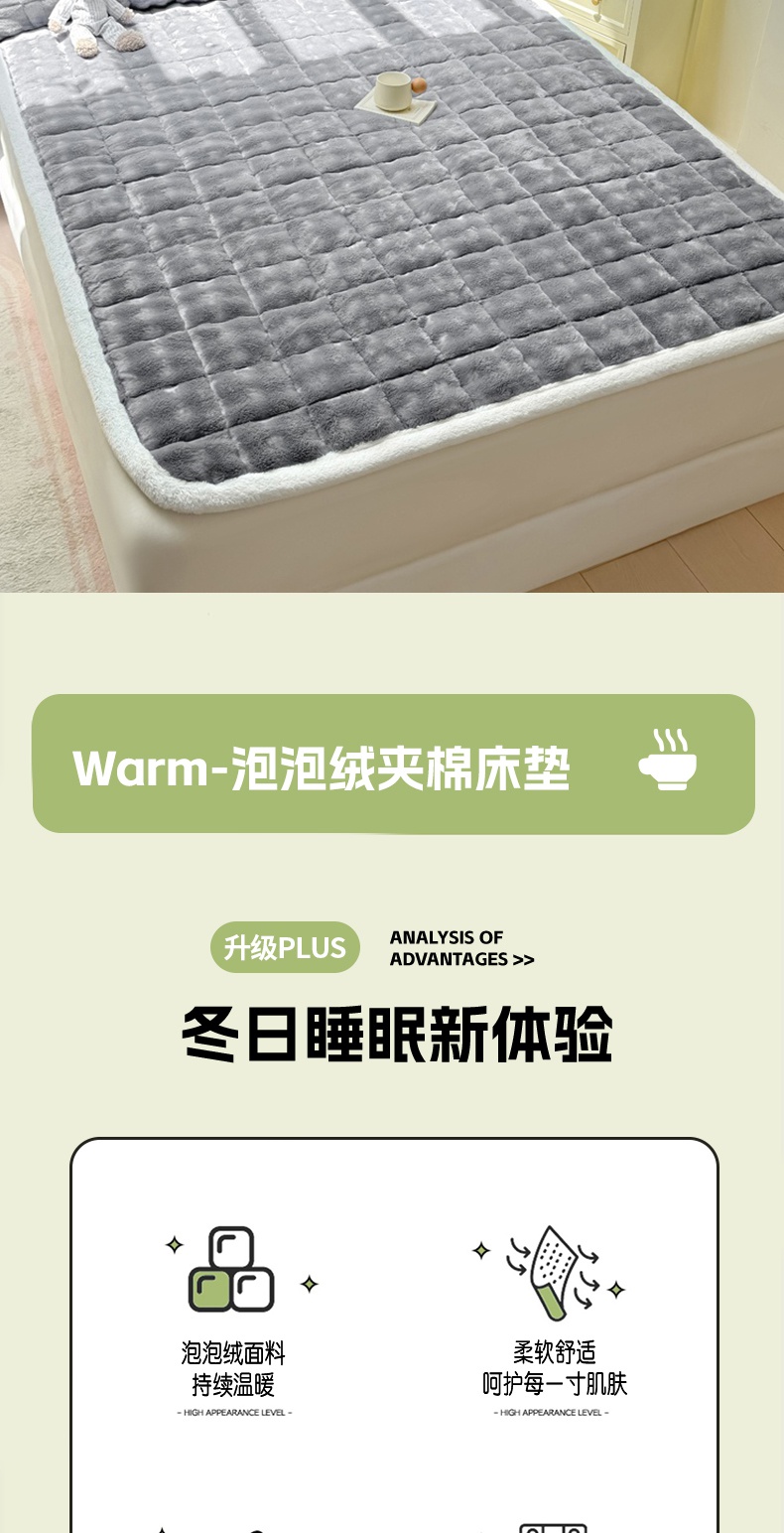 (总)麒东家纺 2025年新款兔毛绒泡泡绒夹棉床垫,粉色,咖色,绿色,米白,浅灰,深灰,天蓝