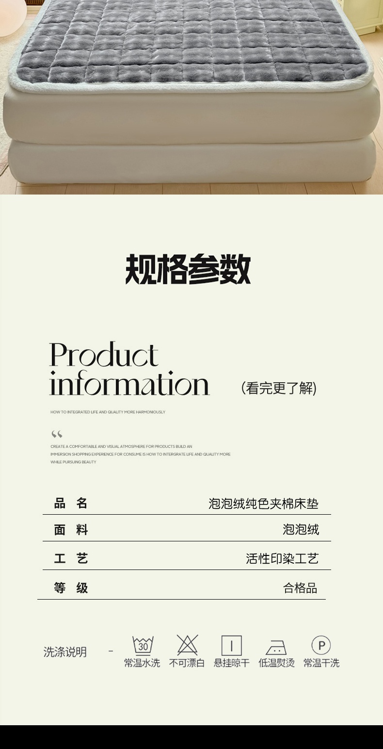 商品名称:麒东家纺 2025新款泡泡绒纯色夹棉床垫 浅灰
