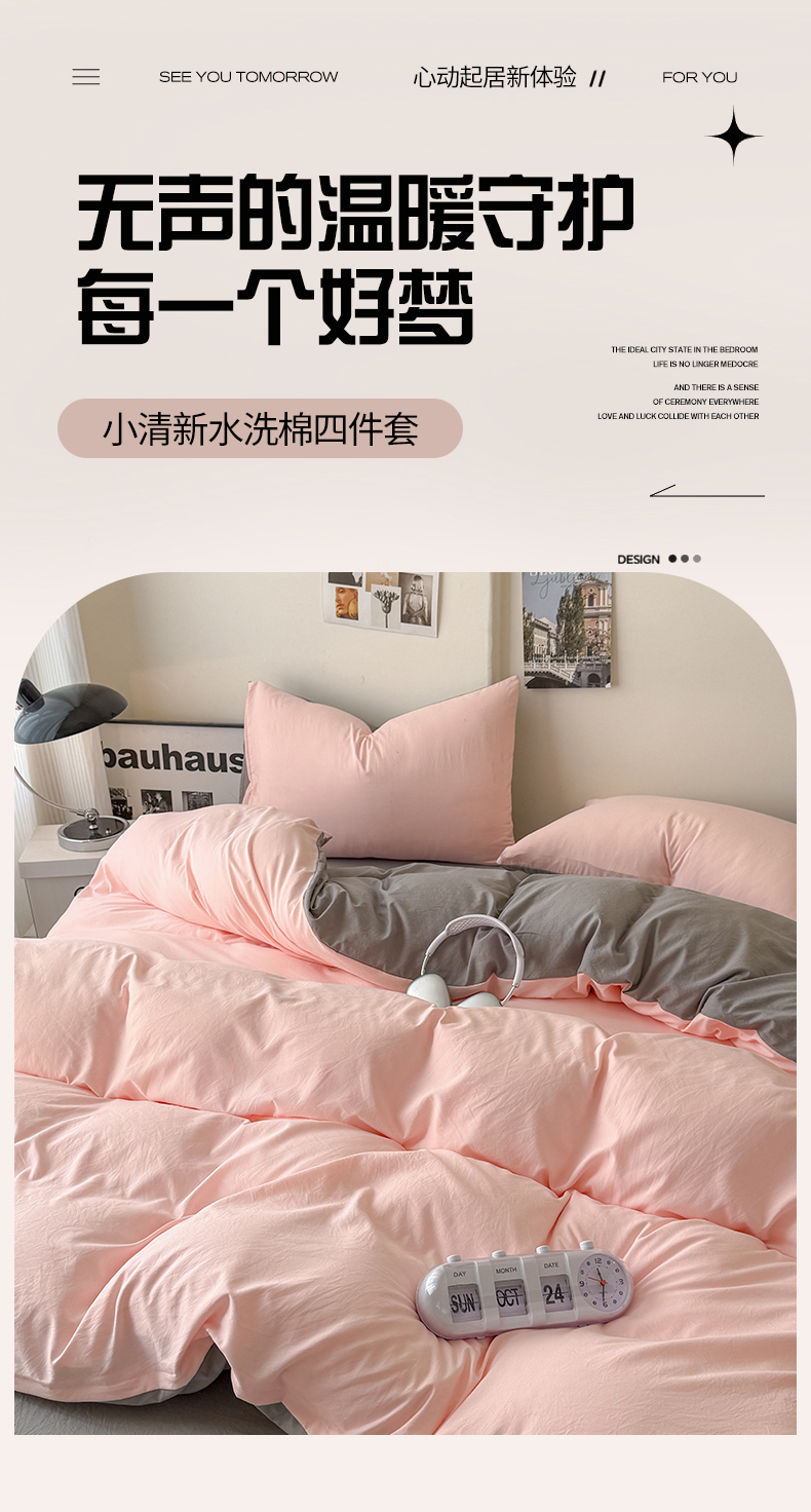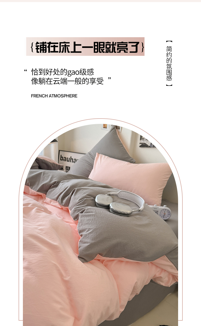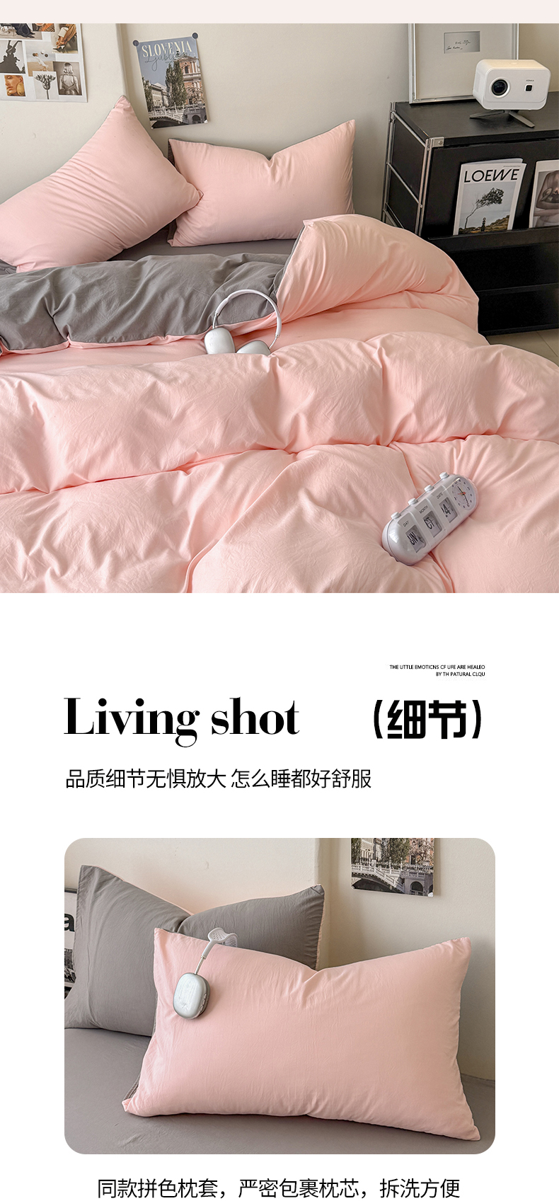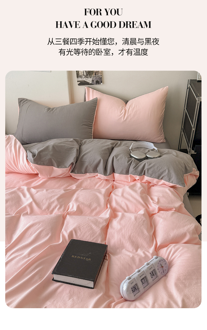 当前位置: 91家纺网 > 商品网购 > 床品套件 > 四件套 > 其它四件套 > 桔禾家纺 2025新款ins风纯色水洗棉四件套双拼水洗棉学生三件套四件套 水粉浅灰