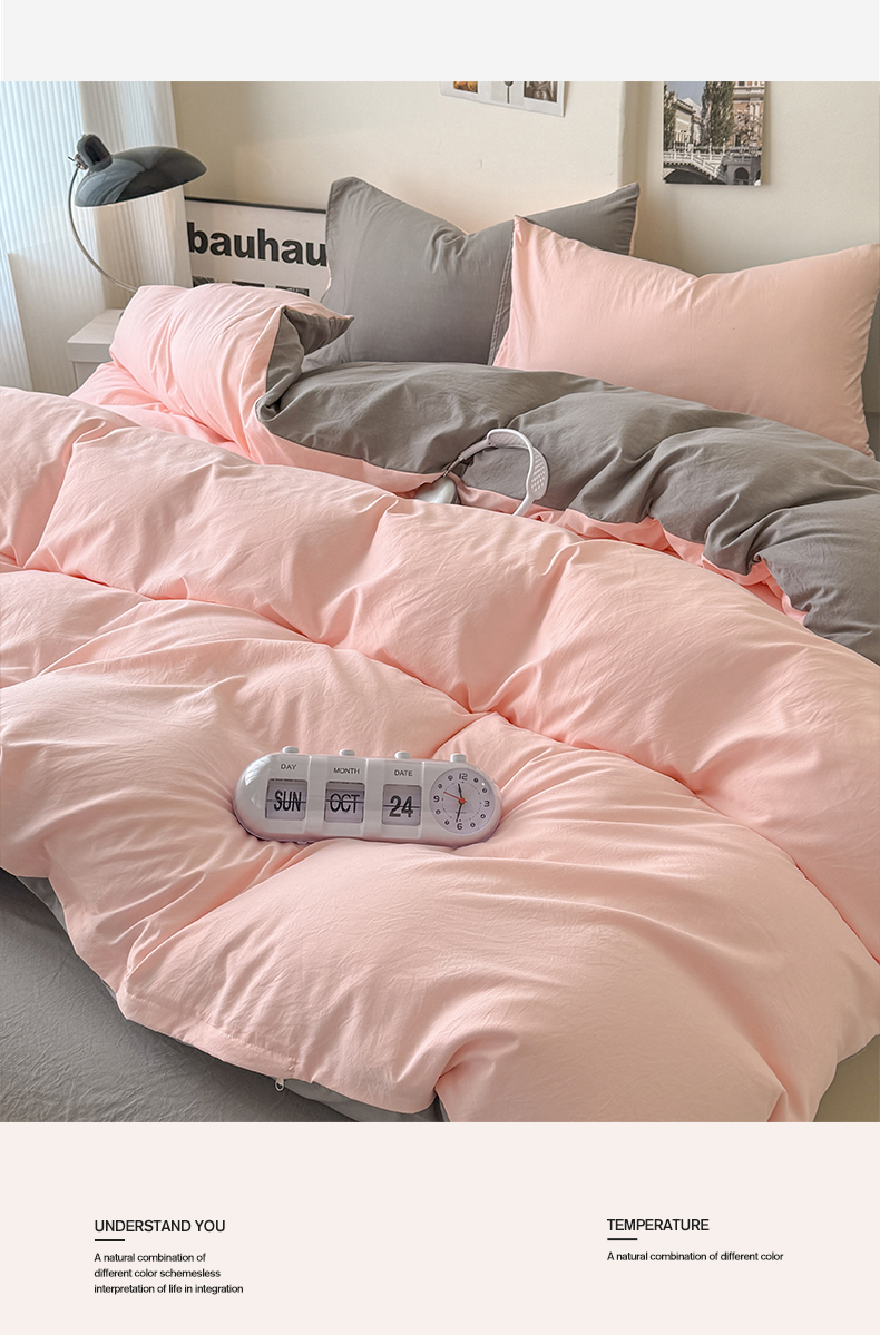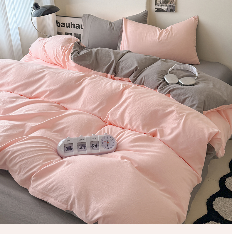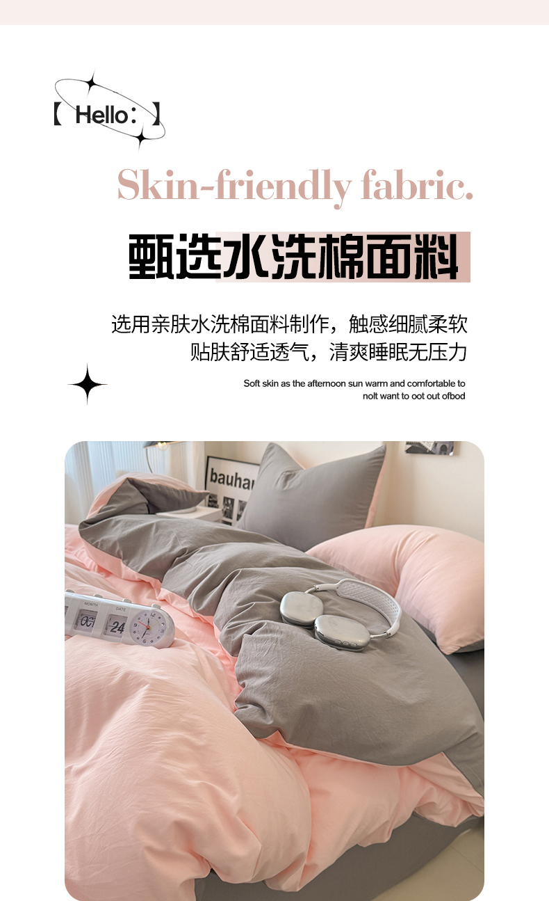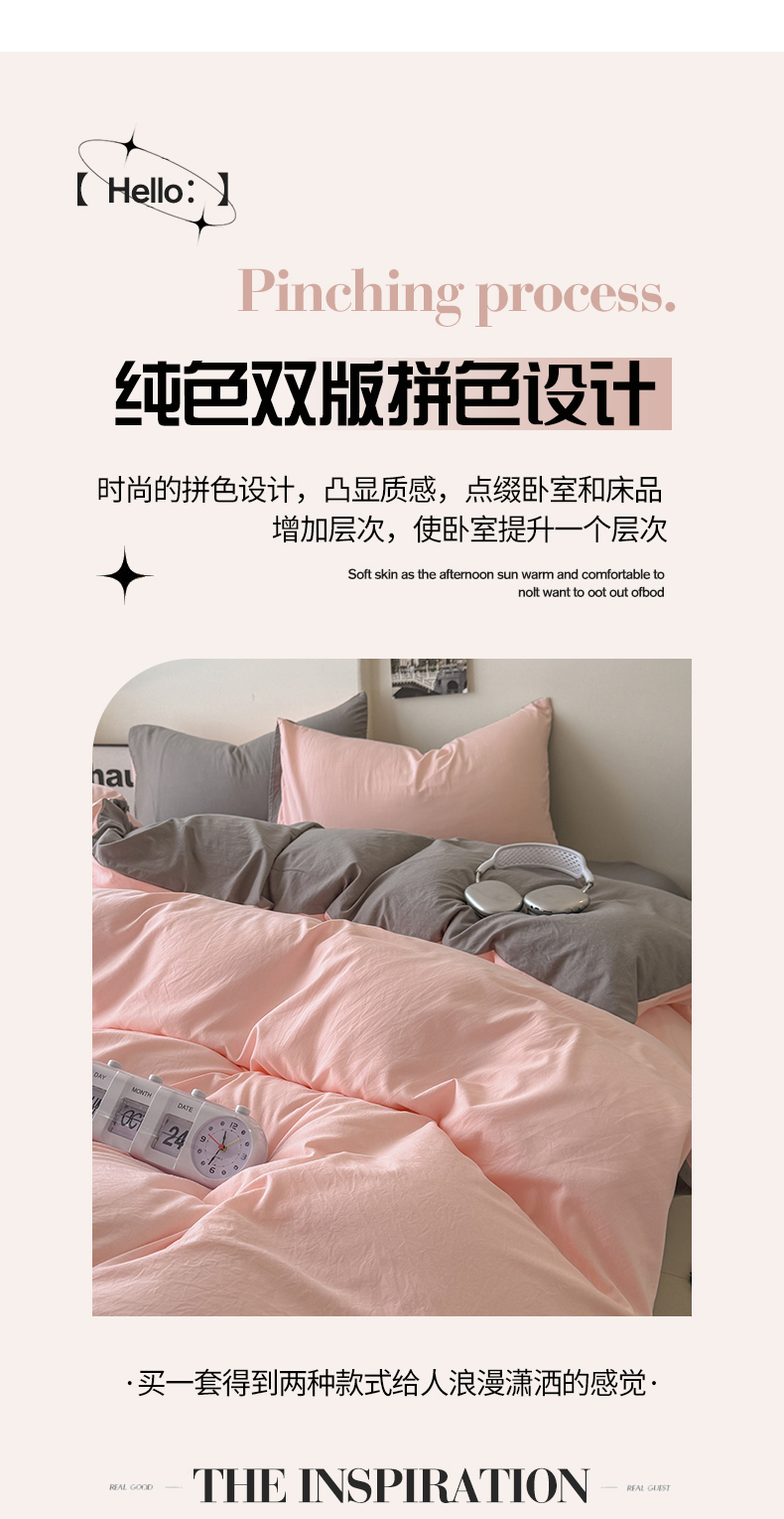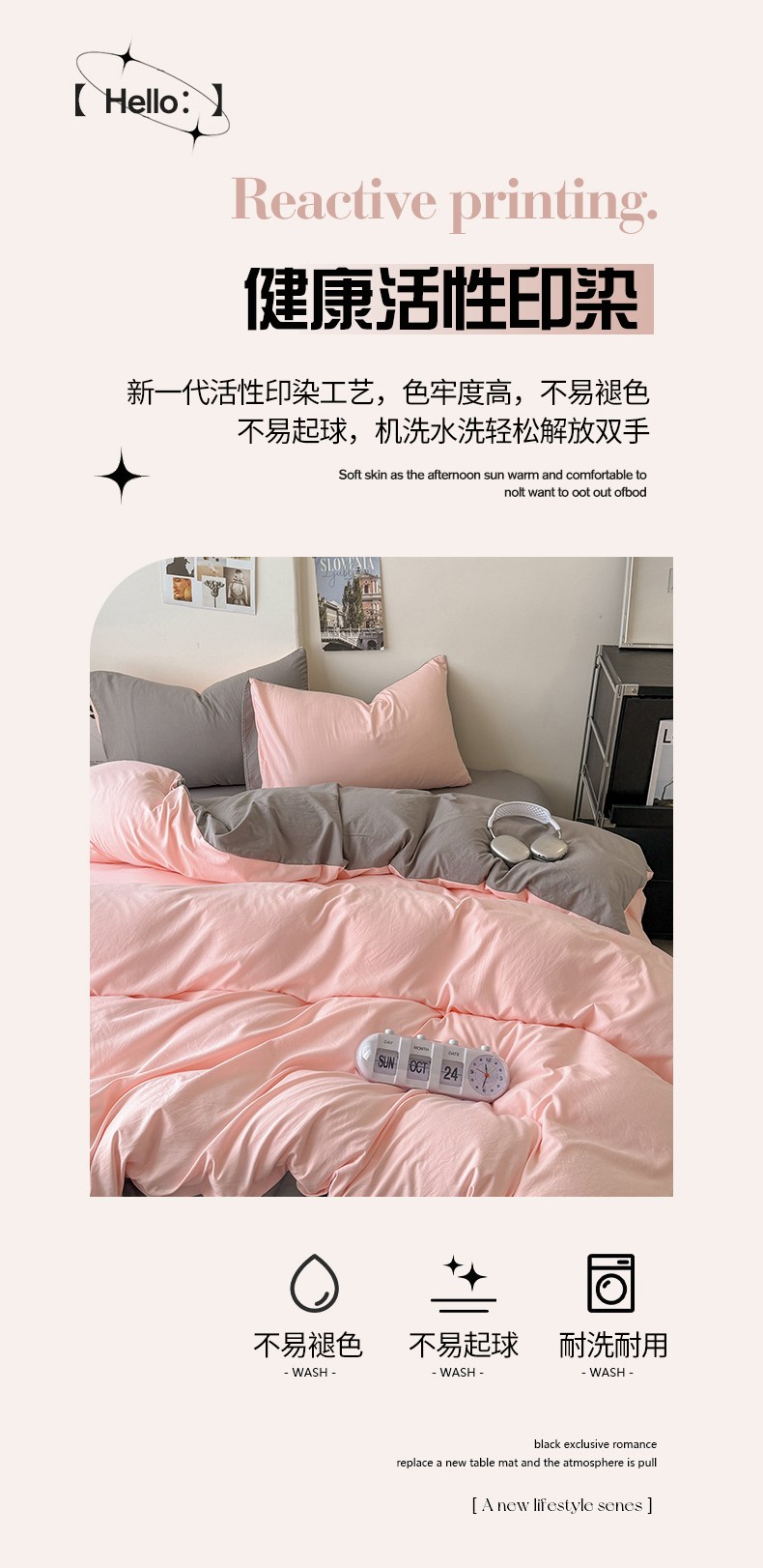 当前位置: 91家纺网 > 商品网购 > 床品套件 > 四件套 > 其它四件套 > 桔禾家纺 2025新款ins风纯色水洗棉四件套双拼水洗棉学生三件套四件套 水粉浅灰