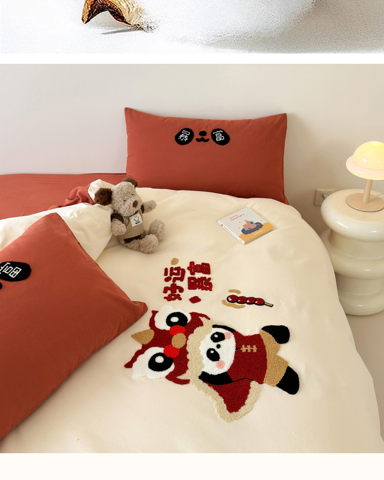 当前位置: 91家纺网 > 商品网购 > 床品套件 > 四件套 > 全棉普通四件套 > 如意朵 2025新款全棉加厚磨毛绣花四件套风格一(专版花型) 狮来运转