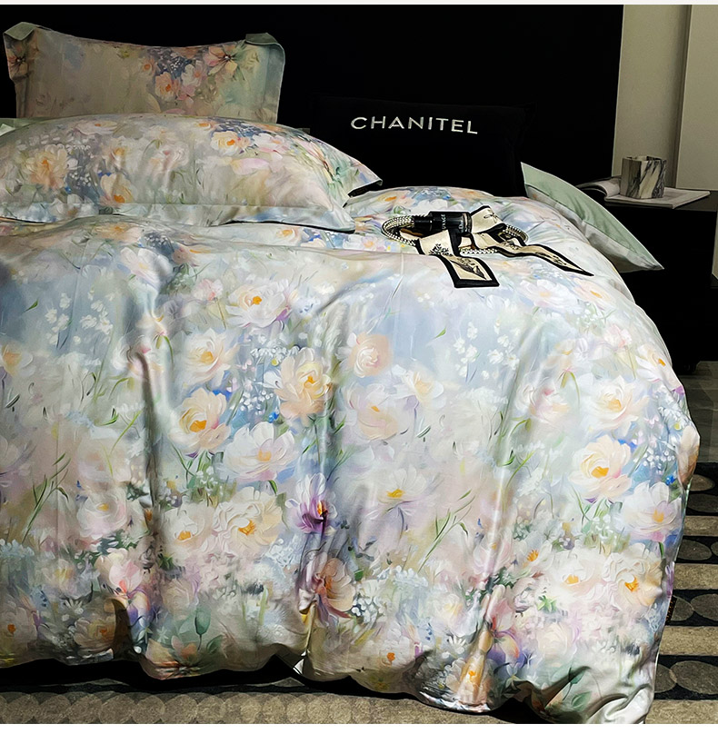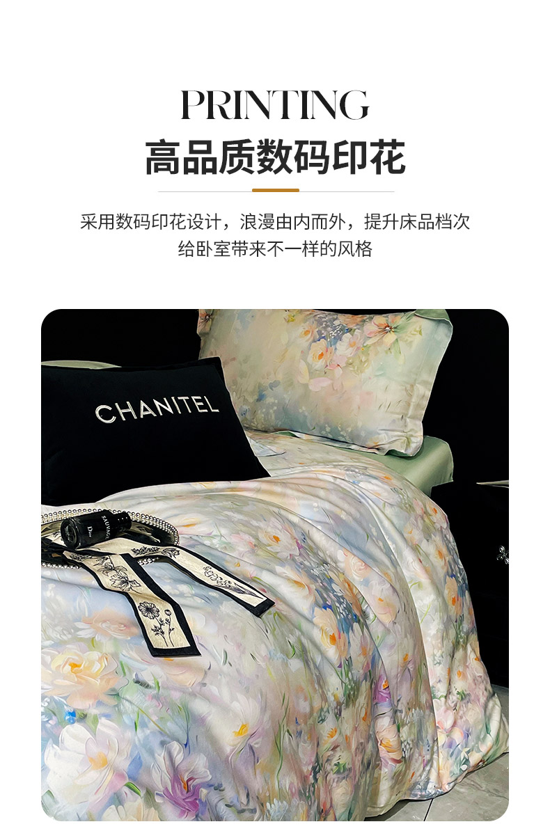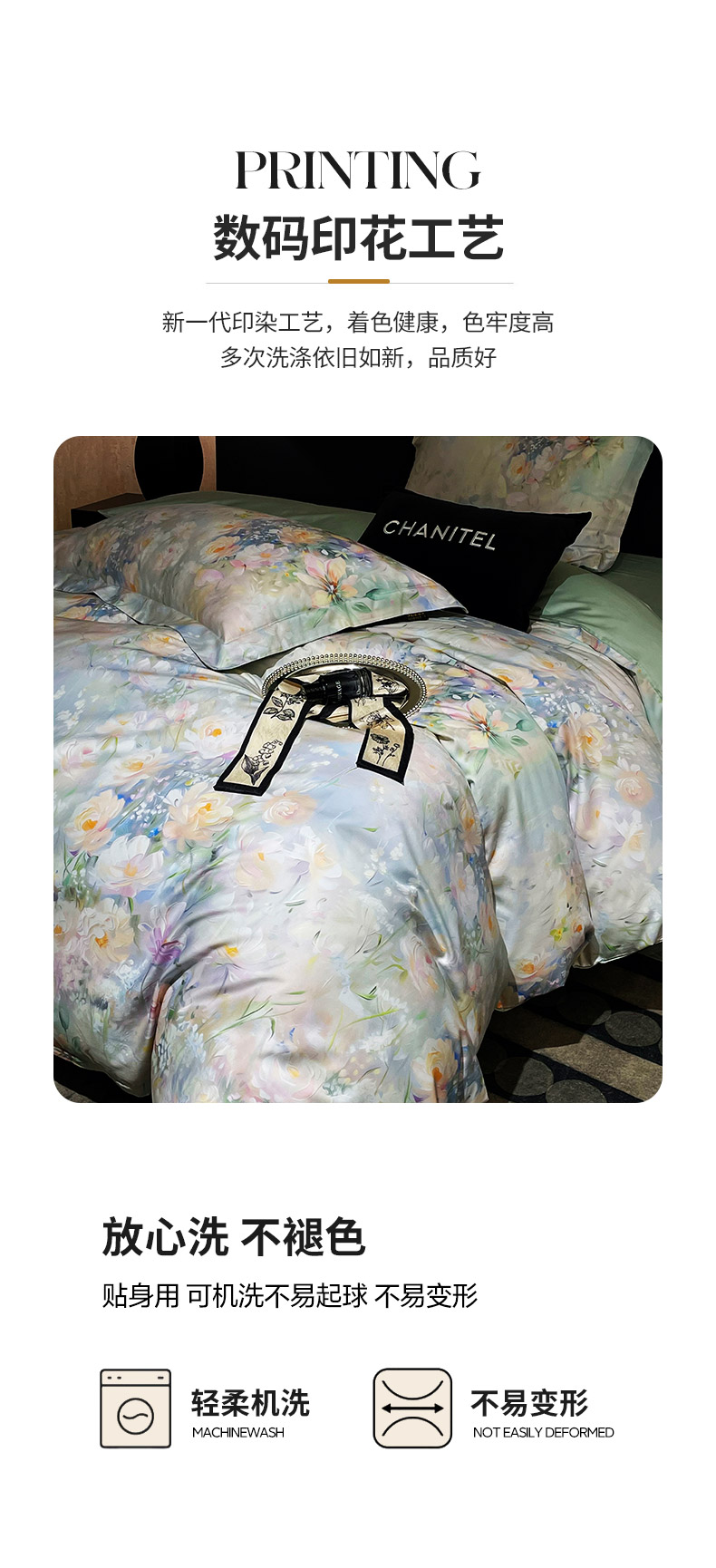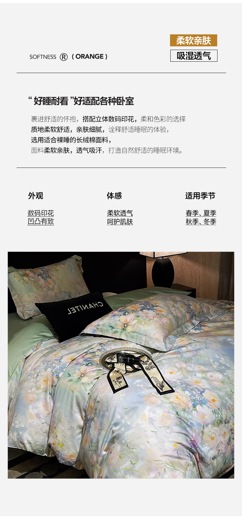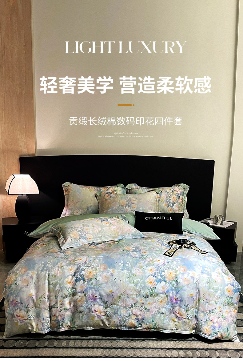 大渔生活 2025新款贡缎长绒棉高品数码印花四件套 柔菌栀恋