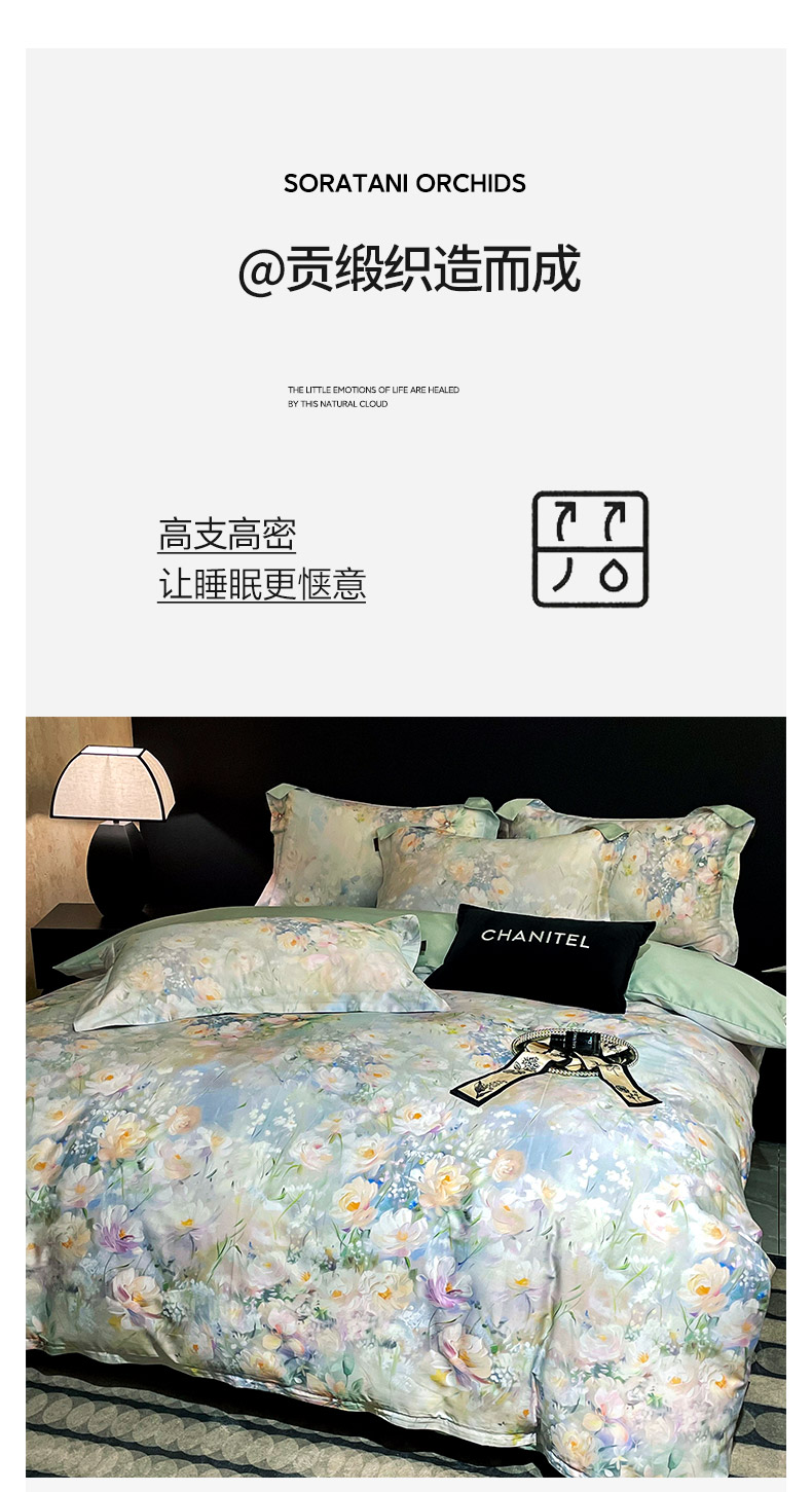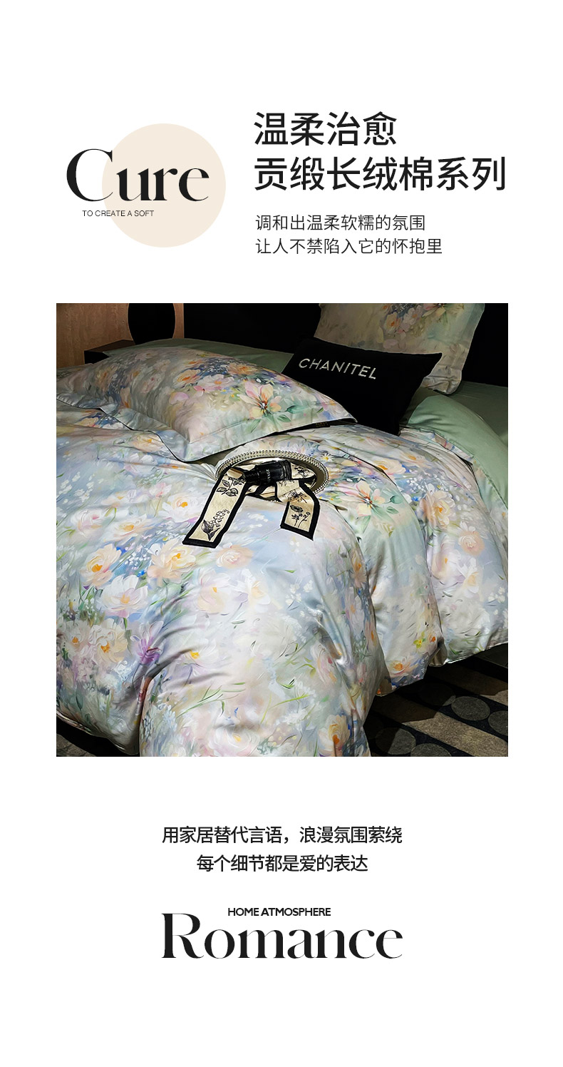 商品名称:大渔生活 2025新款贡缎长绒棉高品数码印花四件套 柔菌栀恋