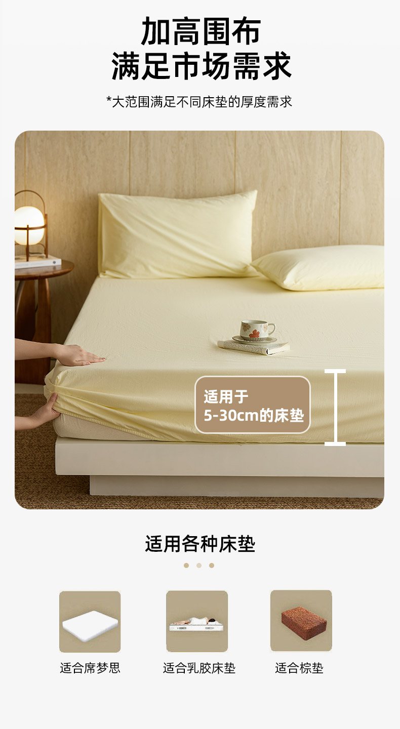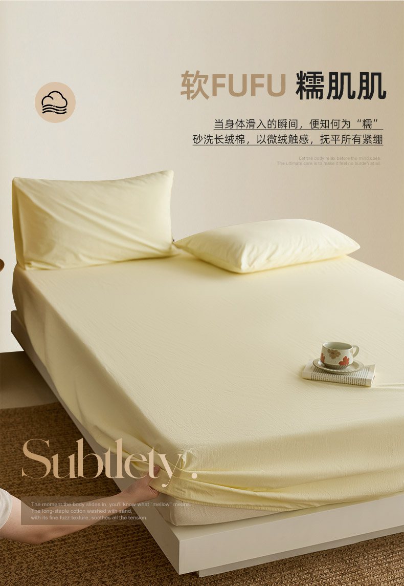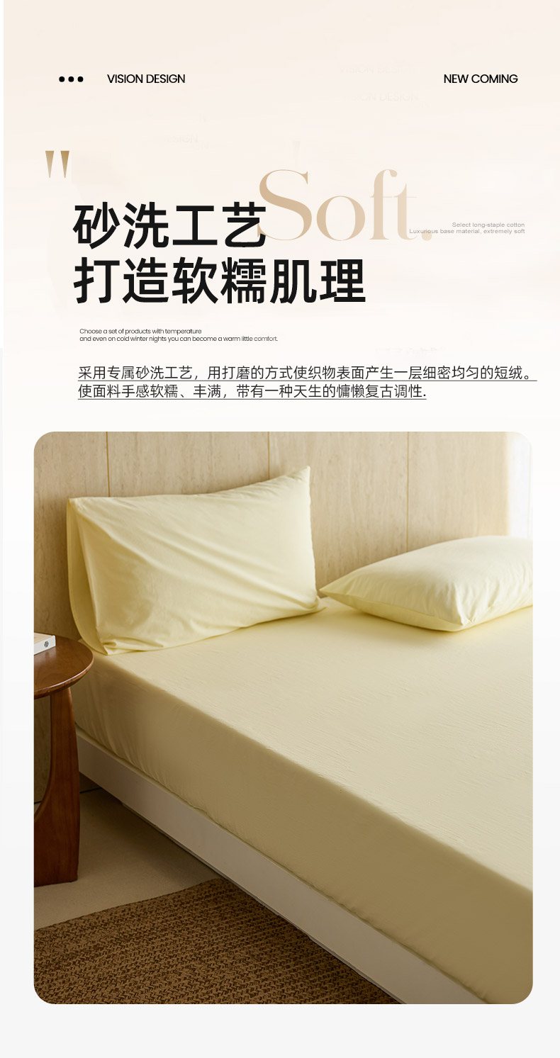 (总)轩和家居 2025新款全棉高支旧感砂洗长绒棉单床笠,组合,薄樱粉,淡黄色,豆沙色,霁兰色,落栗棕,墨染灰,暮烟灰,浅云白,青绿色,秋麦色,松石绿,天空蓝,雾海蓝,细雨灰