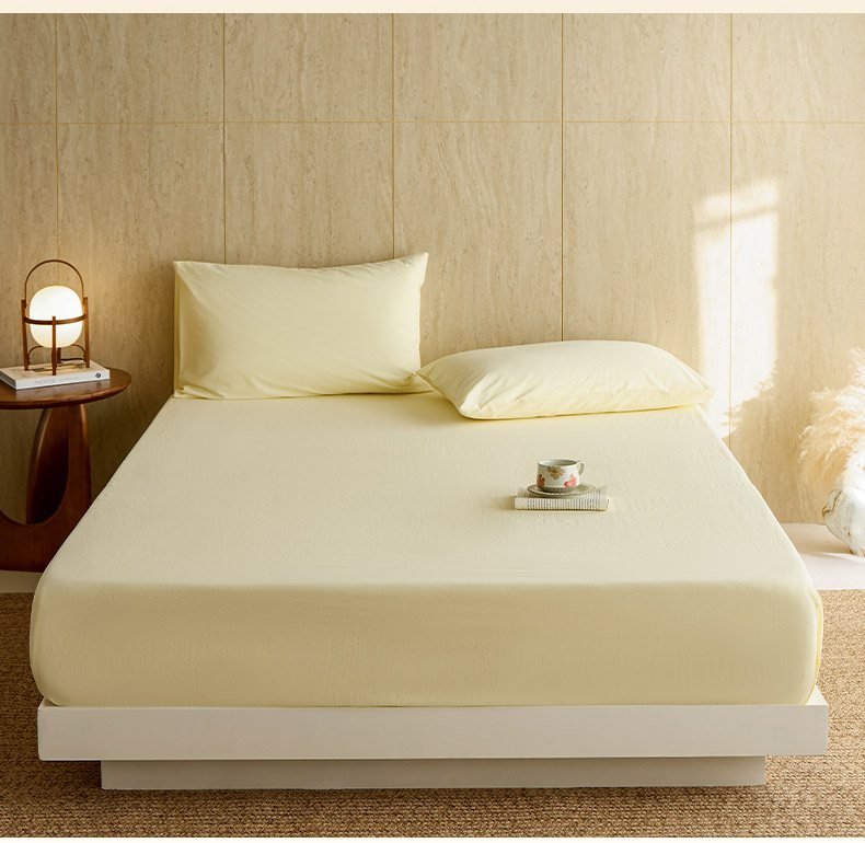 商品名称:轩和家居 2025新款全棉高支旧感砂洗长绒棉单床笠 淡黄色