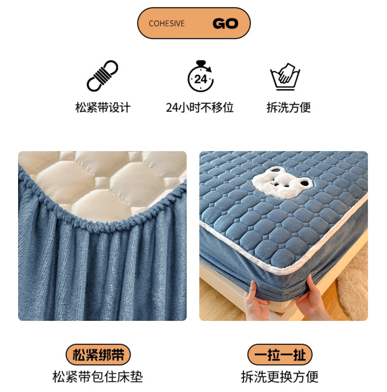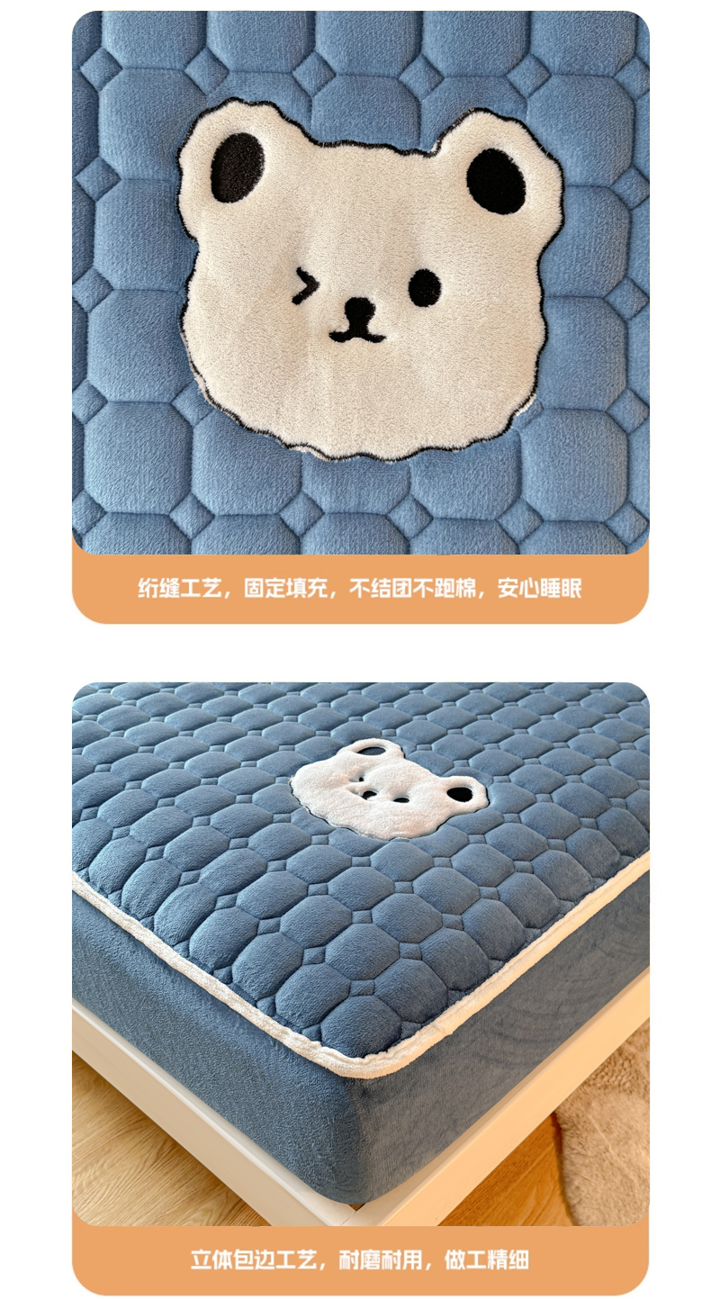 (总)予梦家纺 2025新款牛奶绒加厚刺绣床护垫床垫保护套,辛德拉-小白熊绿,辛德拉-黑煤球粉,辛德拉-黑煤球灰,辛德拉-黑煤球蓝,辛德拉-黑煤球绿,辛德拉-小白熊粉,辛德拉-小白熊灰,辛德拉-小白熊蓝