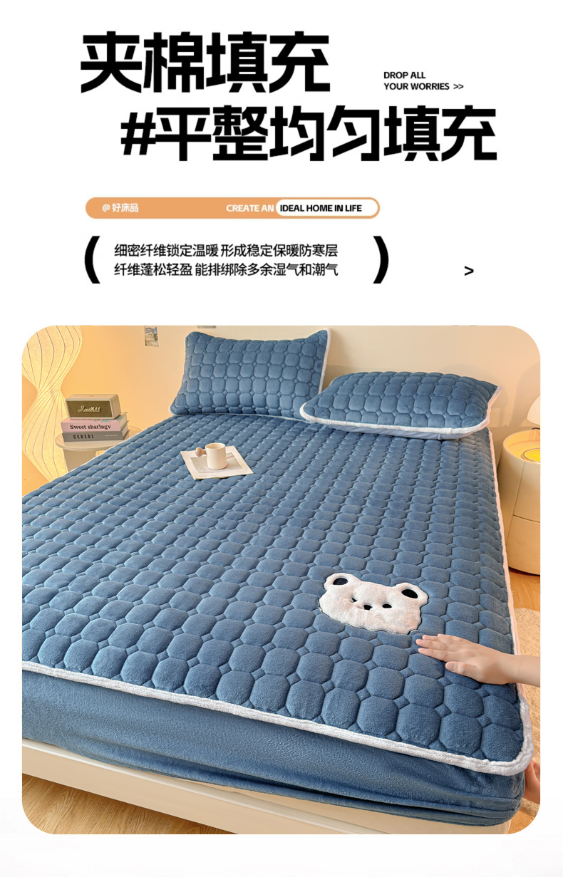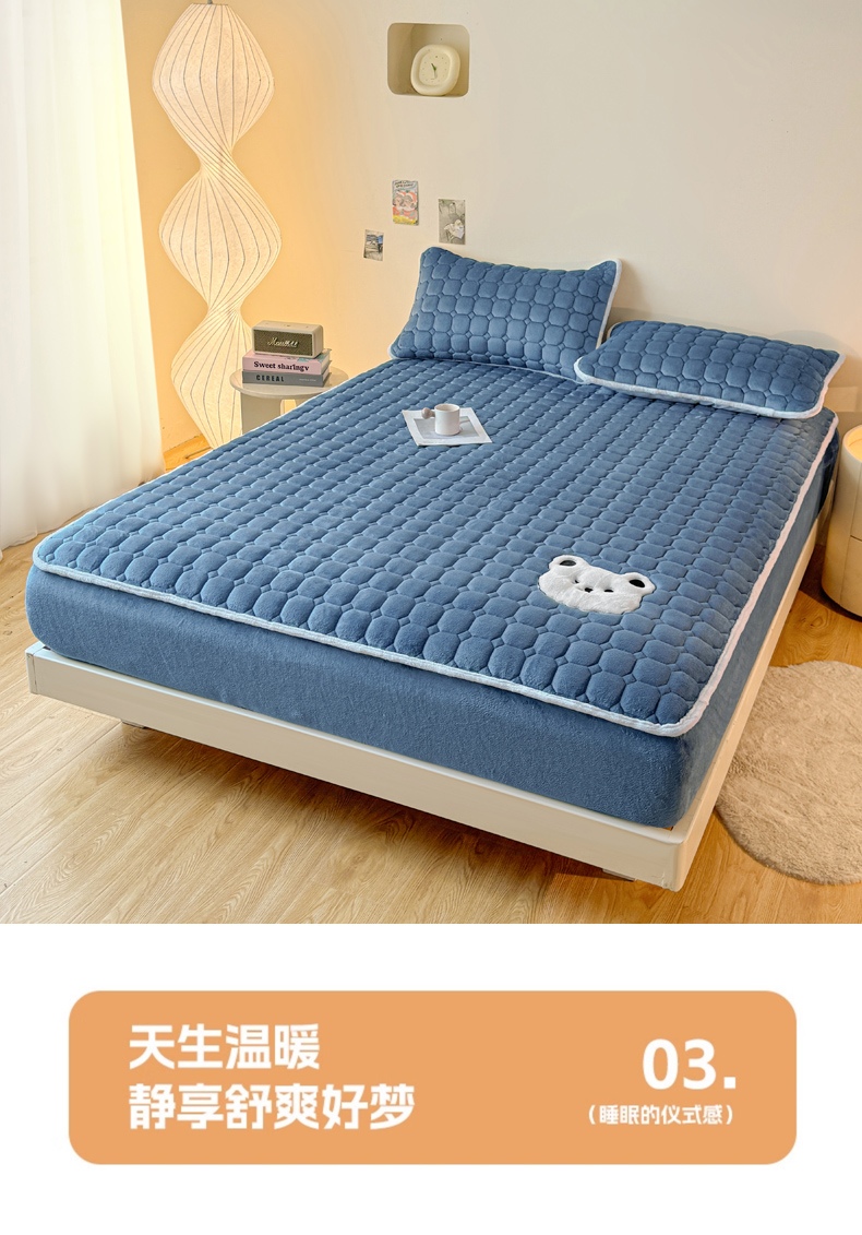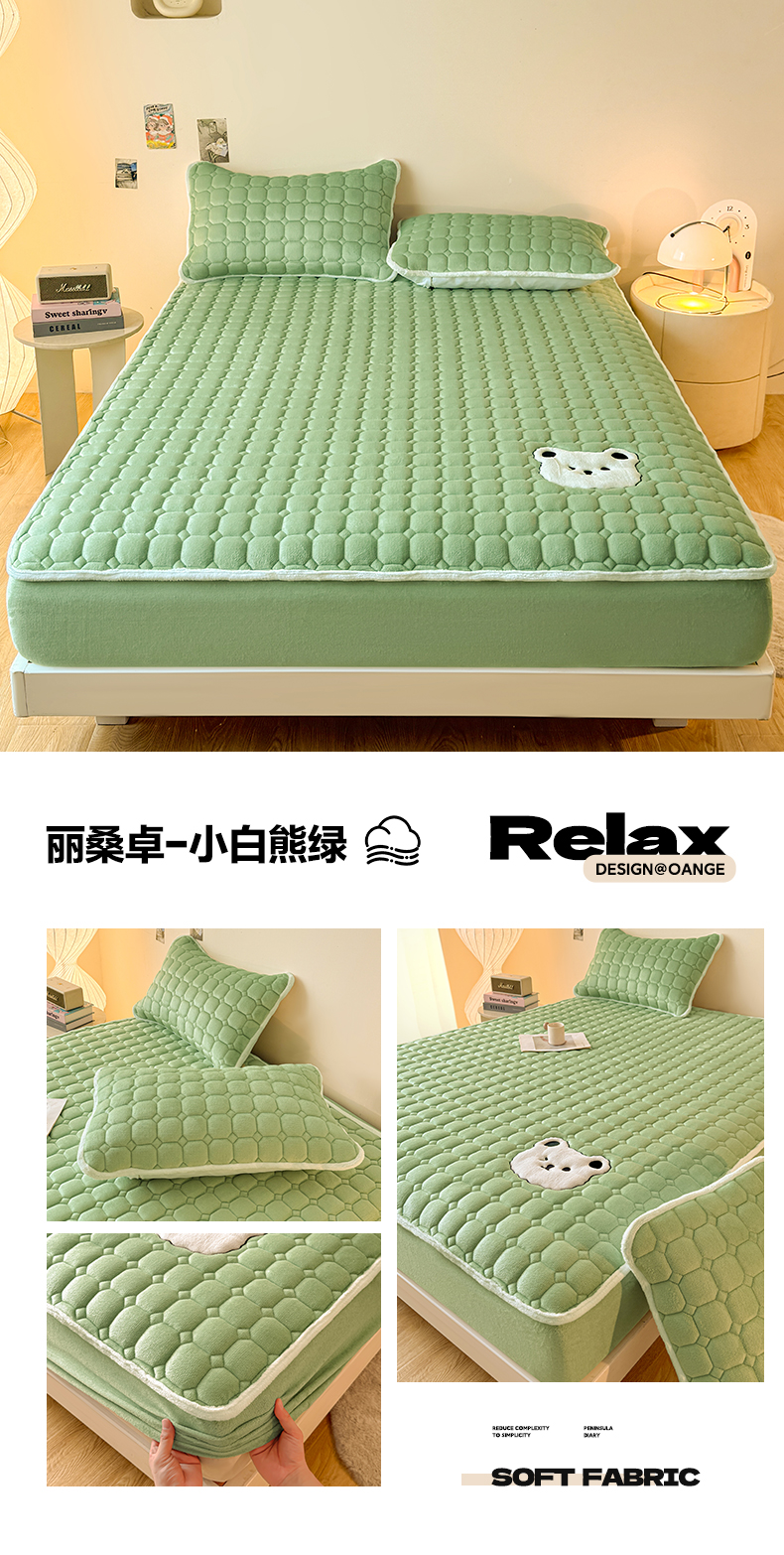 (总)予梦家纺 2025秋冬新款牛奶绒加厚刺绣夹棉单床笠床垫子保护套秋冬保暖床罩子三件套,丽桑卓-黑煤球粉,丽桑卓-黑煤球灰,丽桑卓-黑煤球蓝,丽桑卓-黑煤球绿,丽桑卓-小白熊粉,丽桑卓-小白熊灰,丽桑卓-小白熊蓝,丽桑卓-小白熊绿
