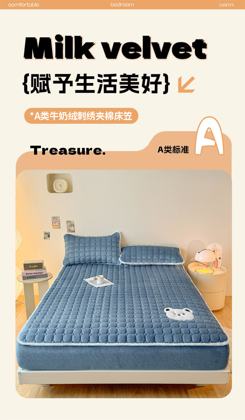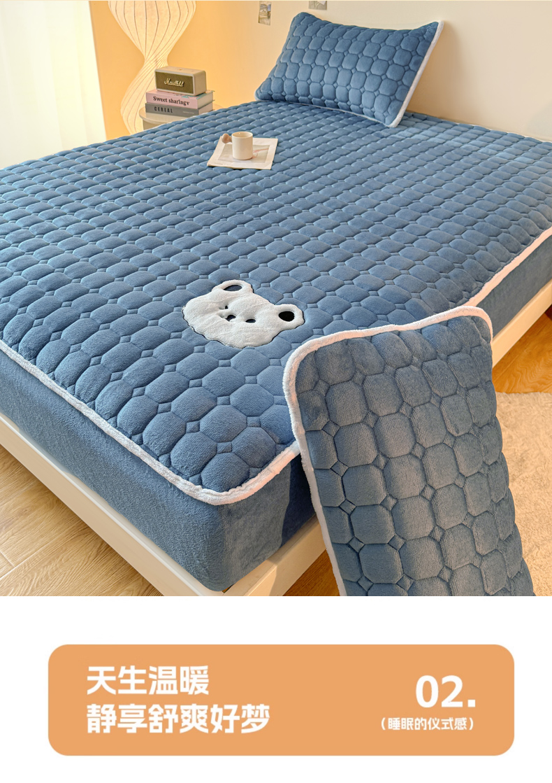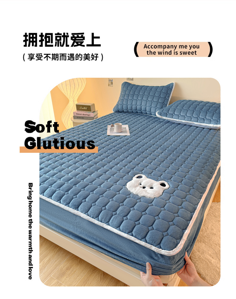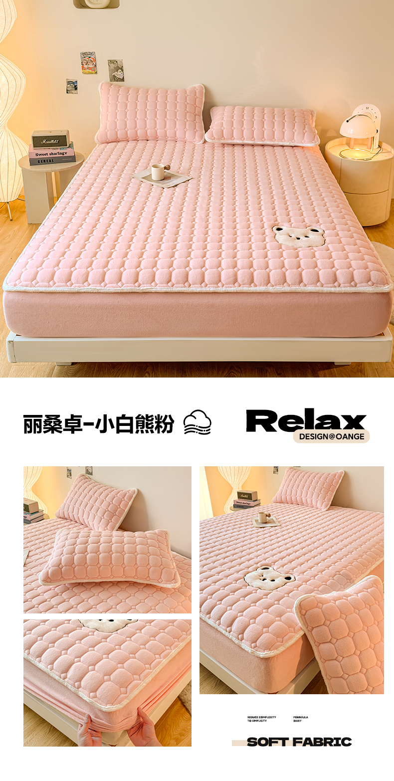 (总)予梦家纺 2025秋冬新款牛奶绒加厚刺绣夹棉单床笠床垫子保护套秋冬保暖床罩子三件套,丽桑卓-黑煤球粉,丽桑卓-黑煤球灰,丽桑卓-黑煤球蓝,丽桑卓-黑煤球绿,丽桑卓-小白熊粉,丽桑卓-小白熊灰,丽桑卓-小白熊蓝,丽桑卓-小白熊绿
