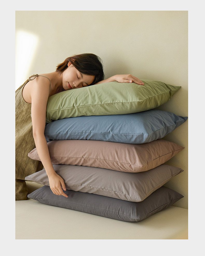 (总)轩和家居 2025新款全棉高支旧感砂洗长绒棉单枕套,组合,薄樱粉,淡黄色,豆沙色,霁兰色,落栗棕,墨染灰,暮烟灰,浅云白,青绿色,秋麦色,松石绿,天空蓝,雾海蓝,细雨灰