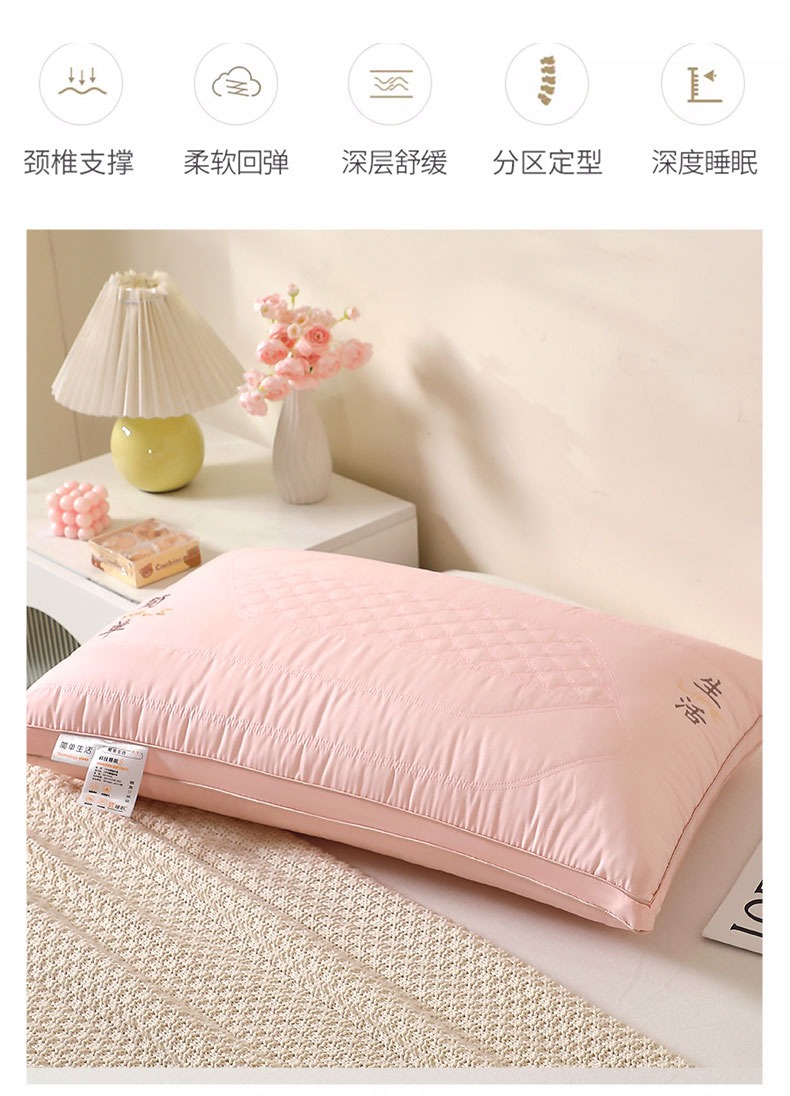 (总)佳尚枕芯 2025新款雪尼绒亲肤舒适深睡眠枕芯舒适护颈枕分区枕枕头枕芯,白色,粉色,紫色