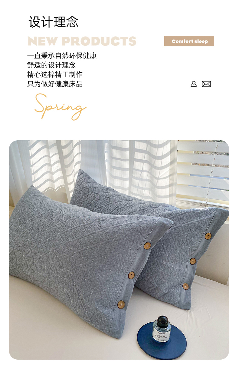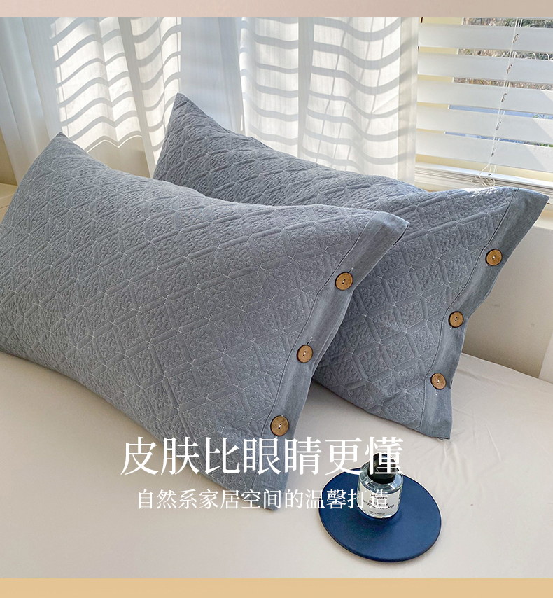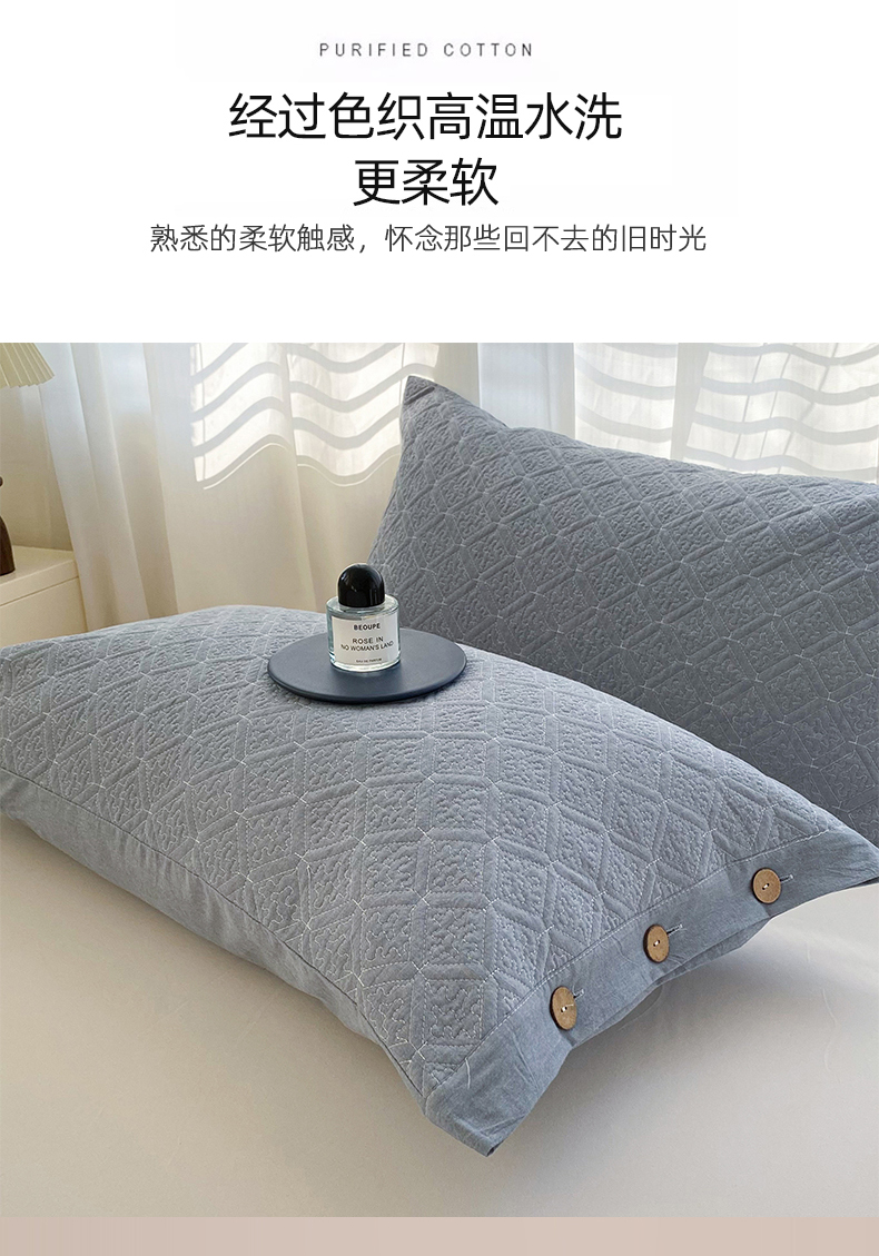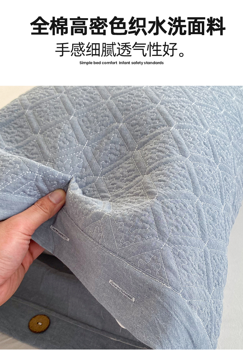 商品名称:美宜家 2026新款全棉枕头套高密色织水洗加棉绗缝高端纯色枕套 极简兰灰