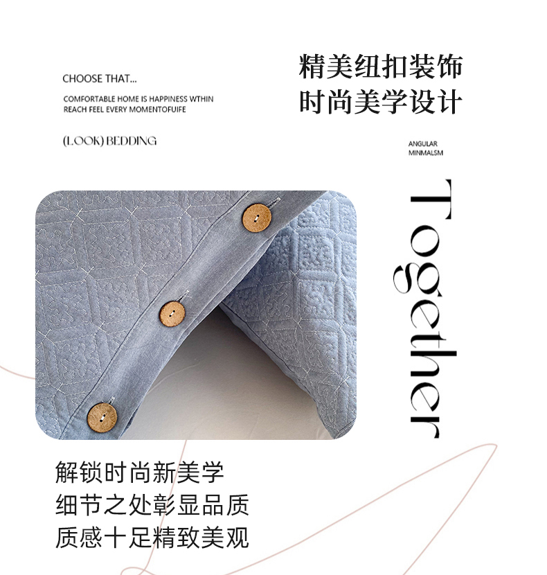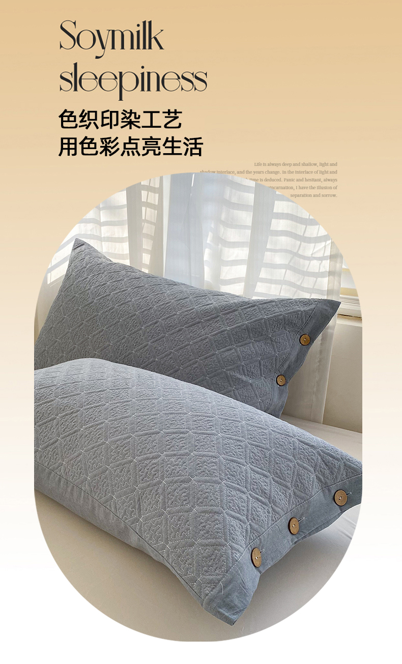 (总)美宜家 2026新款全棉枕头套高密色织水洗加棉绗缝高端纯色枕套,极简山灰,极简米其,极简兰灰,极简仔兰