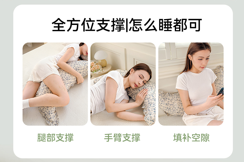 当前位置: 91家纺网 > 商品网购 > 居家日用 > 靠垫/抱枕 > 麦肯锡 2025新款全棉亚麻碎花月牙抱枕夹腿抱枕 素色花影【模特图】/对