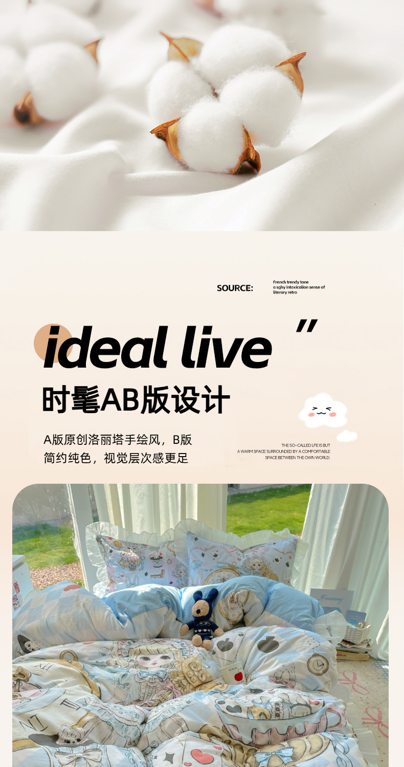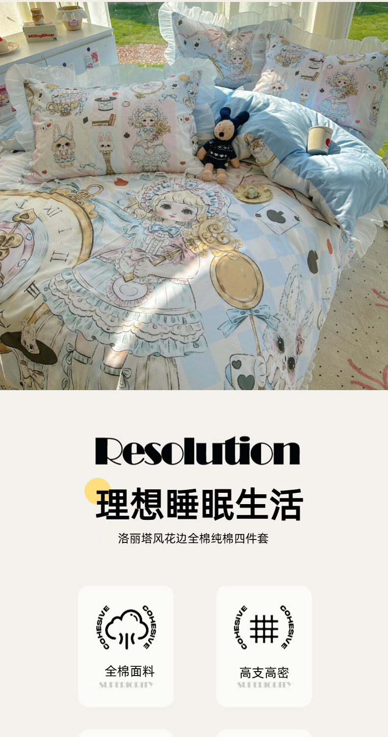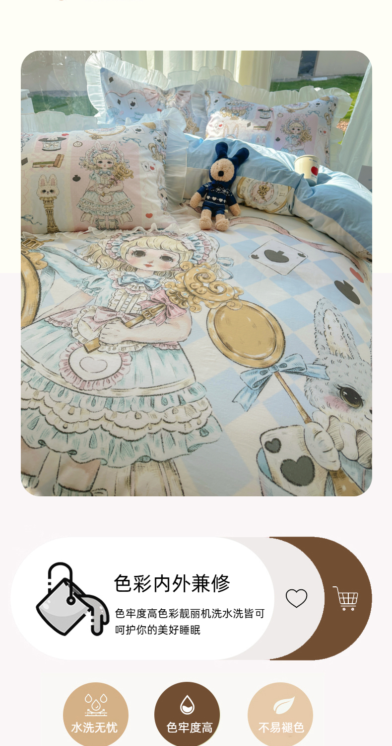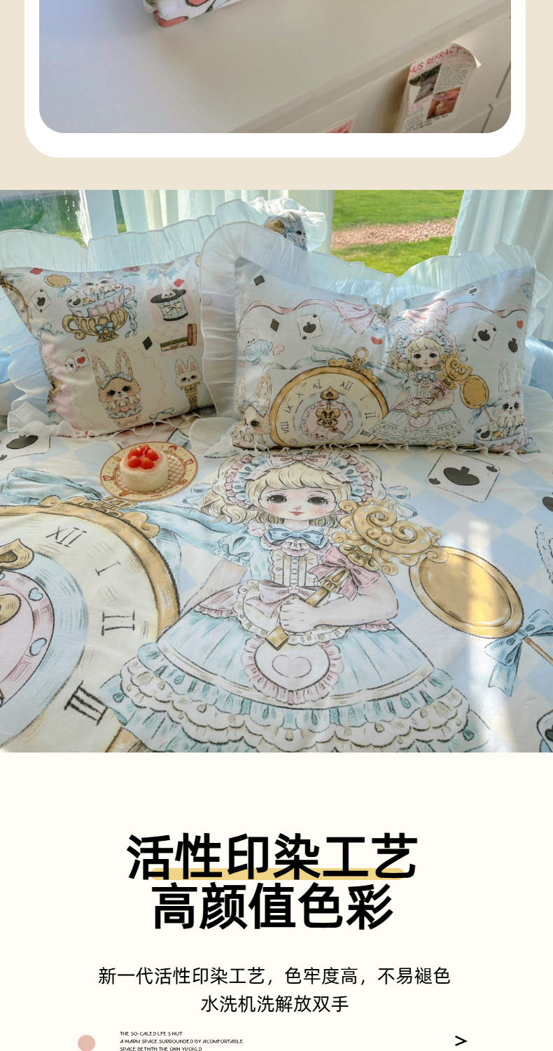 当前位置: 91家纺网 > 商品网购 > 床品套件 > 四件套 > 全棉普通四件套 > 希诺家居 2025新款纯棉洛丽塔风花边韩版萝莉风奶油风可爱卡通全棉四件套 爱丽丝