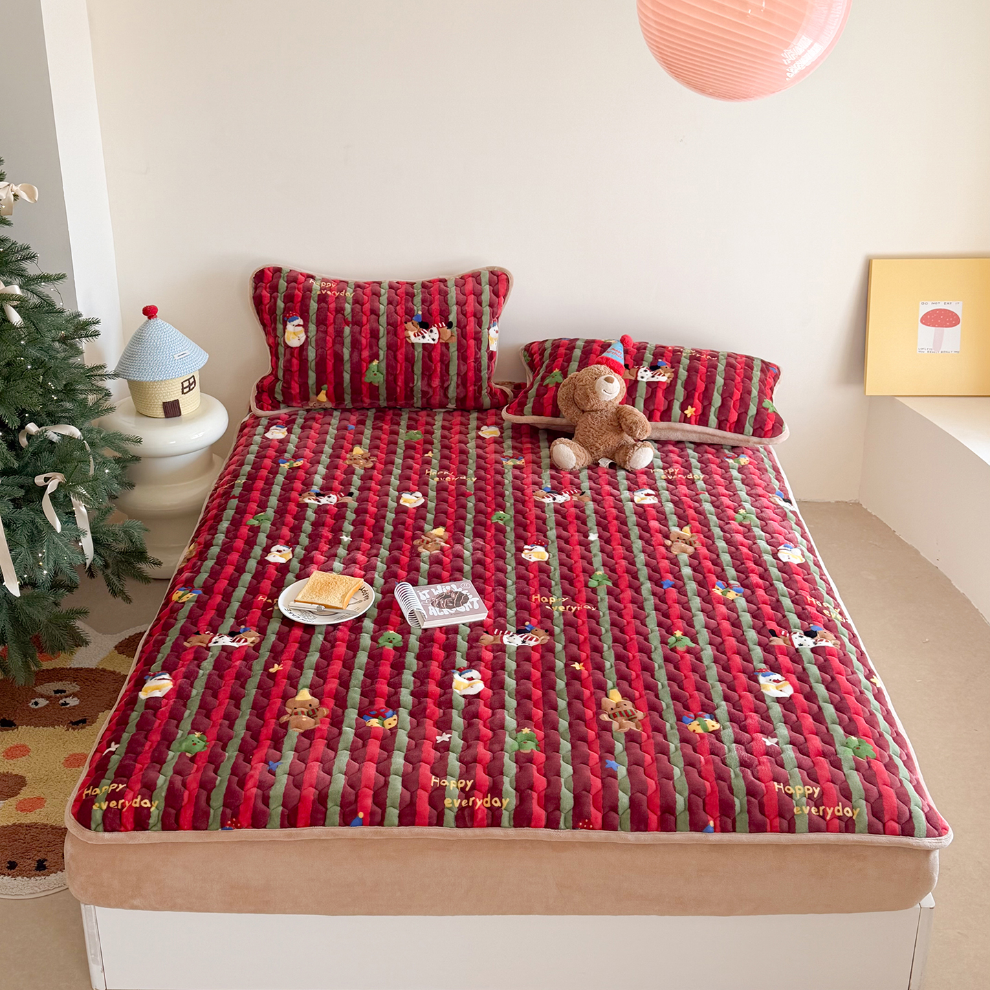 (总)Sweet dreams甜梦 2025新款高克重牛奶绒印花夹棉床笠圣诞款,冬日小猫粉,糖豆,雪人奇趣园