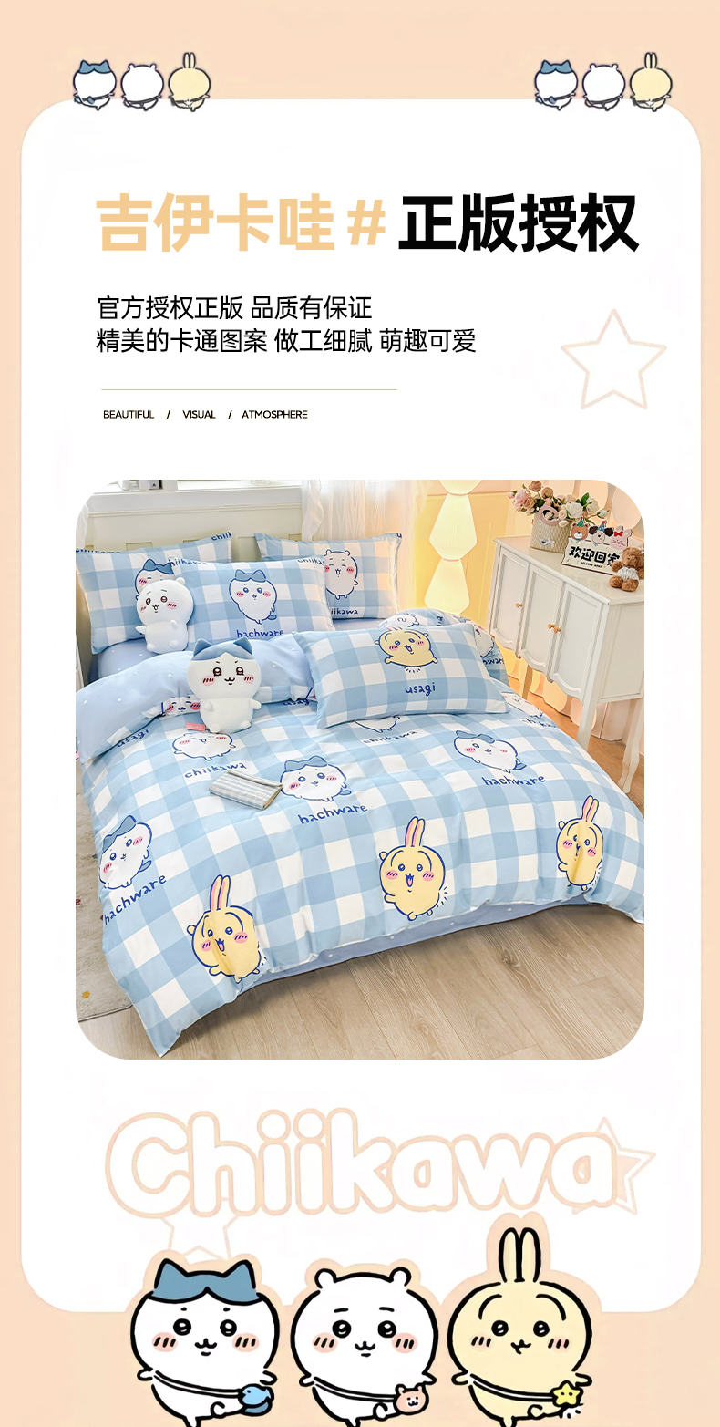 当前位置: 91家纺网 > 商品网购 > 床品套件 > 四件套 > 全棉普通四件套 > 博雅 2025新款吉伊卡哇正版授权全棉卡通印花四件套 蓝格吉伊卡哇