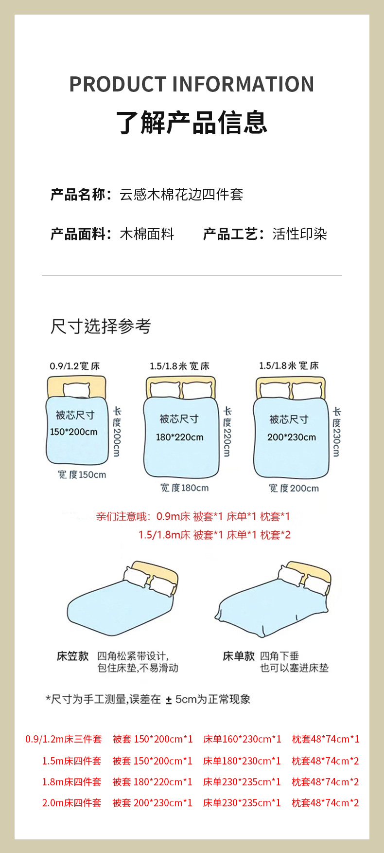 【床笠款】1.8四件套-被套200x230 | ¥72.00 |