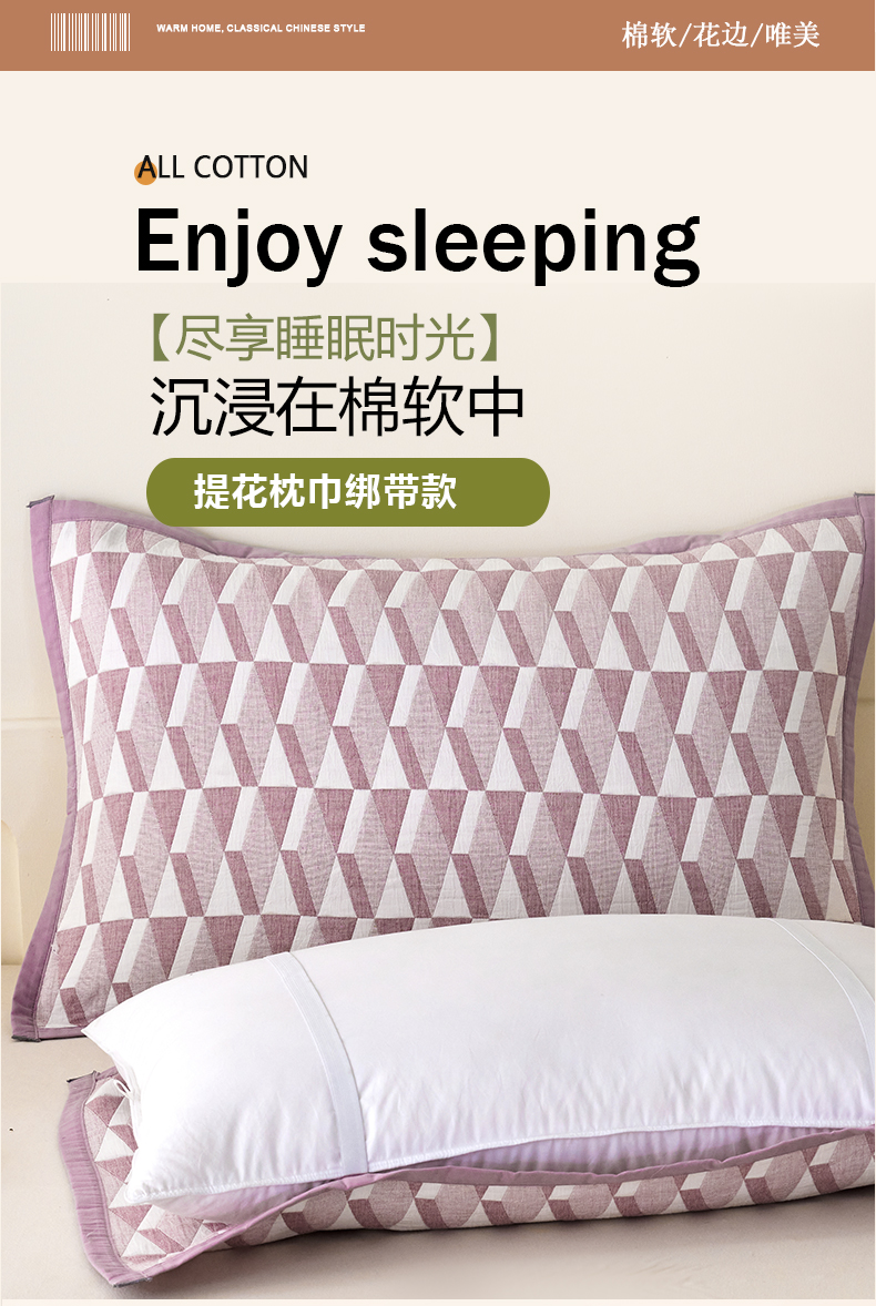 (总)棠薇家纺 2025新款提花绑带款枕巾棉纱布枕巾夹棉枕头巾,木影湖灰,纯色木兰粉,纯色木兰灰,纯色三角灰,纯色三角绿,纯色三角驼,纯色圆圈粉,纯色圆圈灰,纯色圆圈驼,古典风情,菱格灰,菱格紫,罗马故事,木影驼兰,欧式风尚,素练浮光灰,素练浮光紫,星空绿,圆点生活